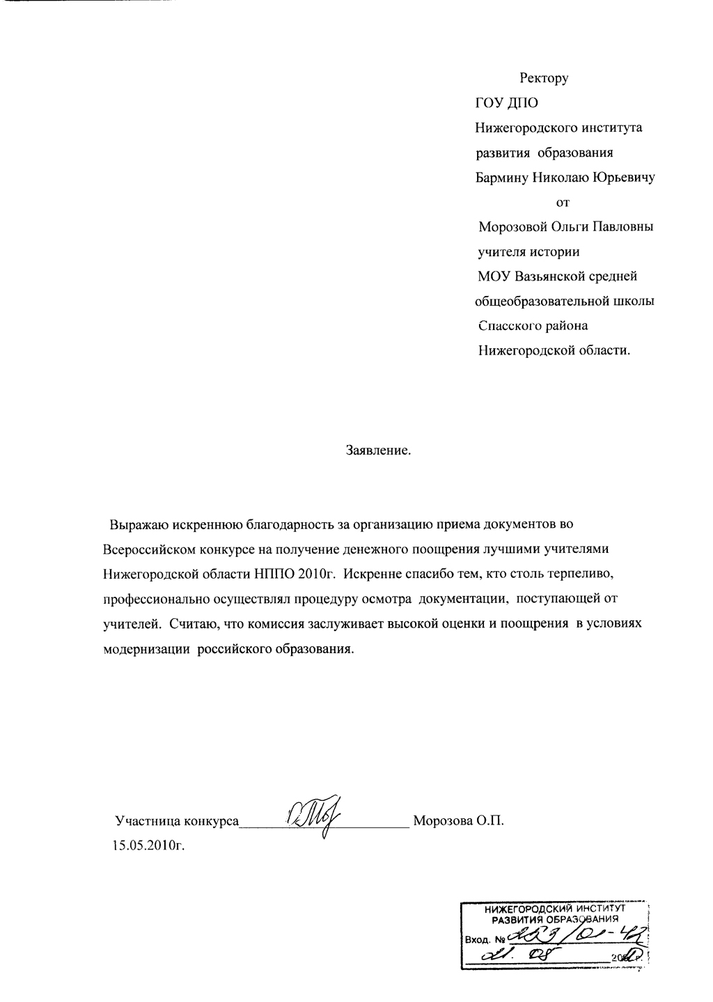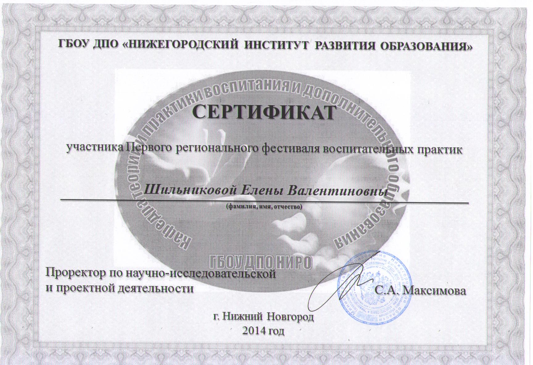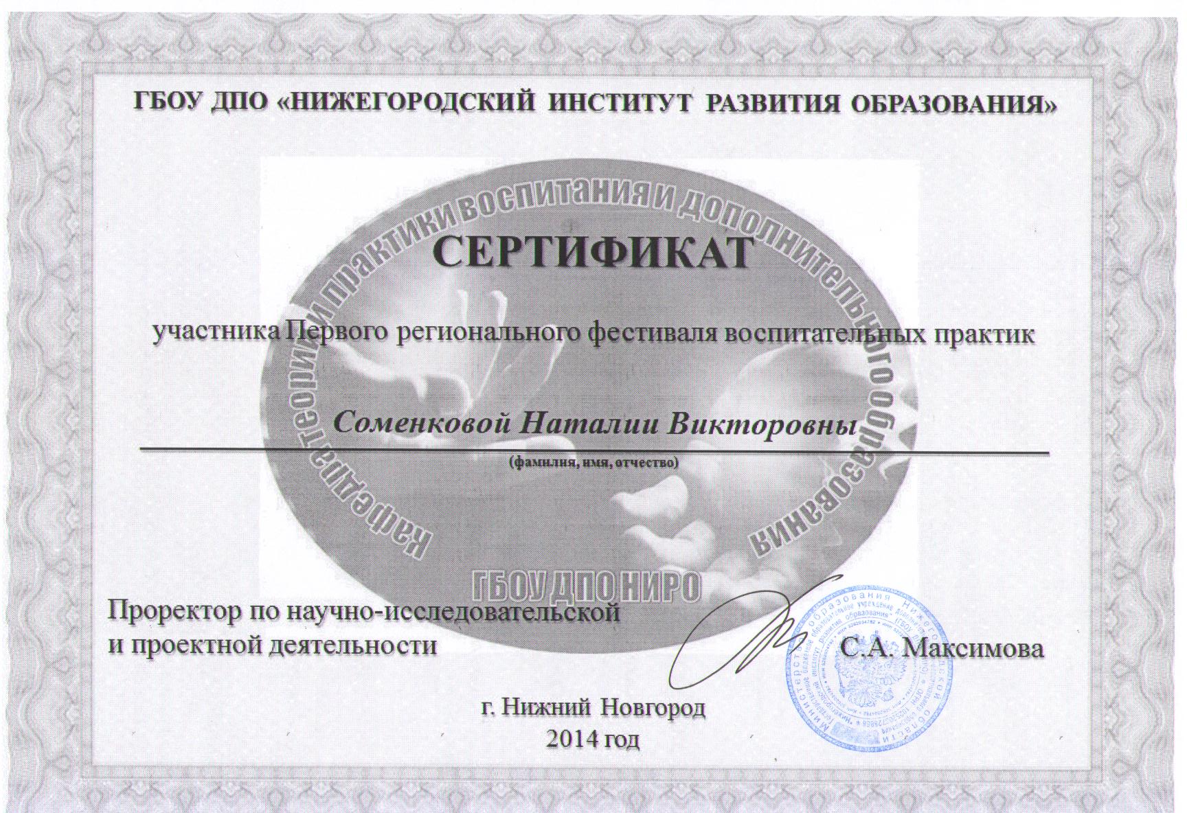 - Благодарность от департамента образования администрации города Нижнего Новгорода
