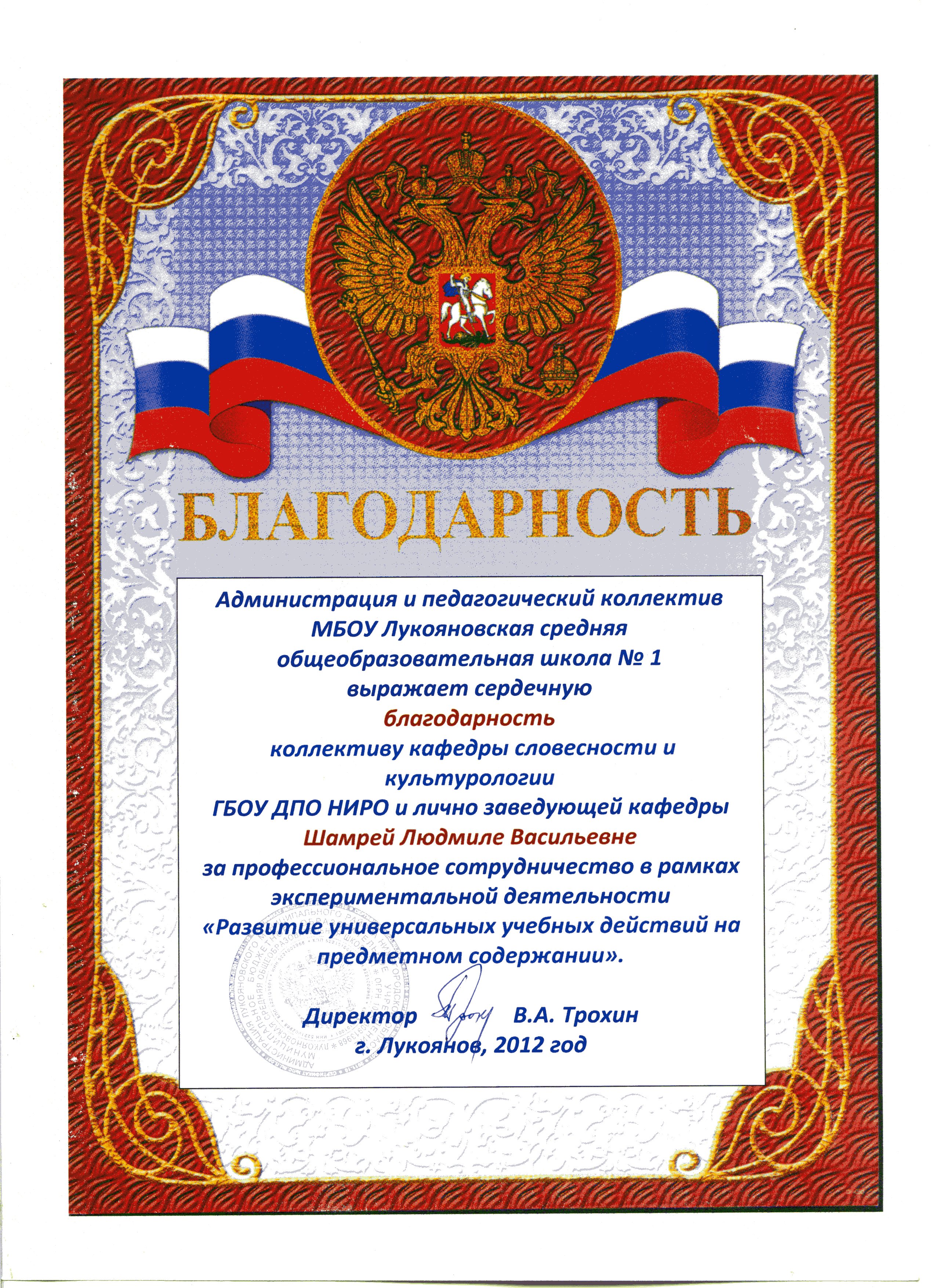 - Благодарность от директора Лукояновского педагогического колледжа им.А.М.Горького