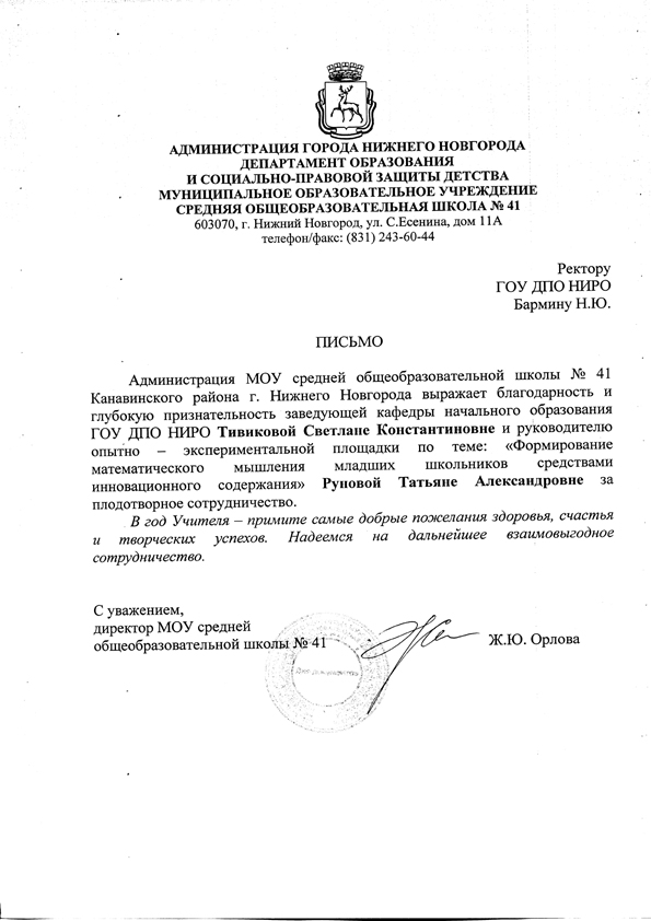 - Благодарность от департамента образования администрации г. Нижнего Новгорода