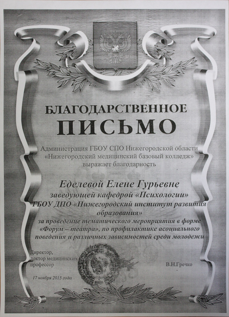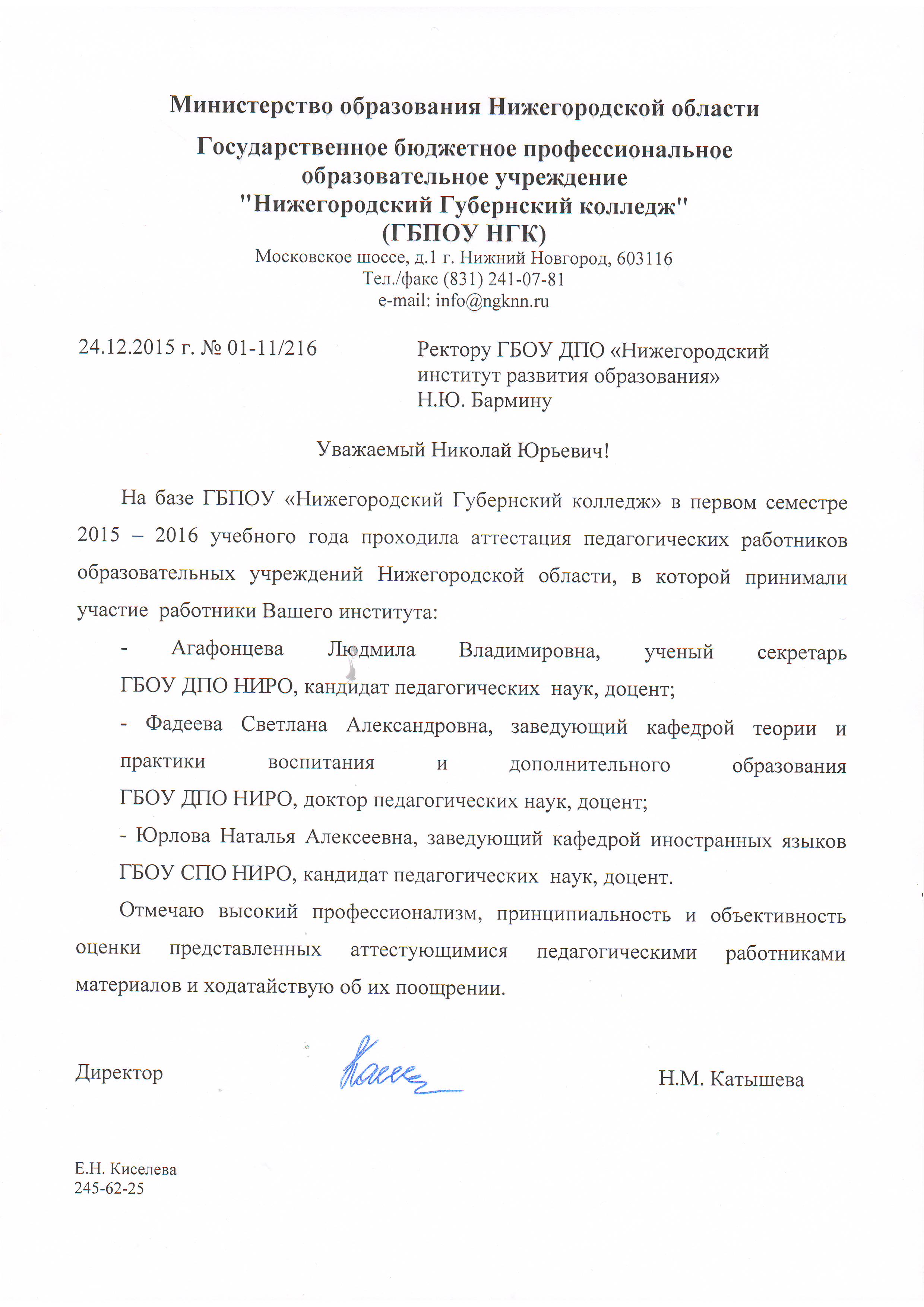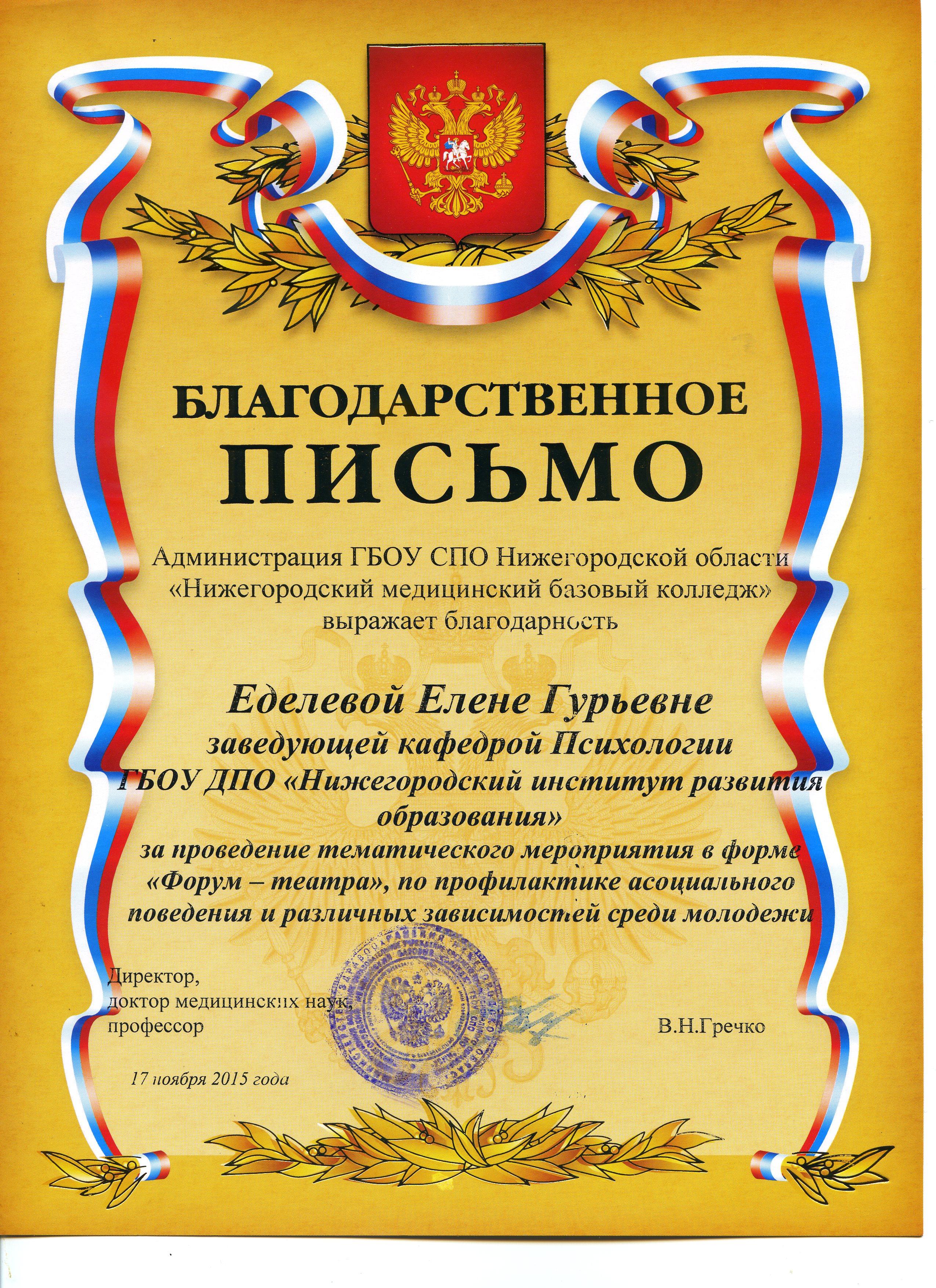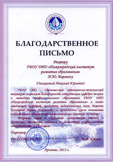 - Благодарность от ГБПОУ "Нижегородского губернского колледжа"