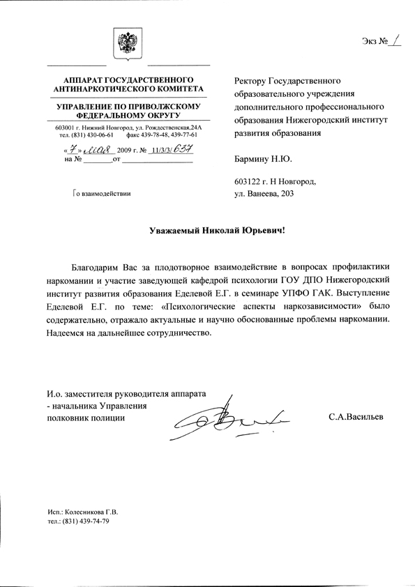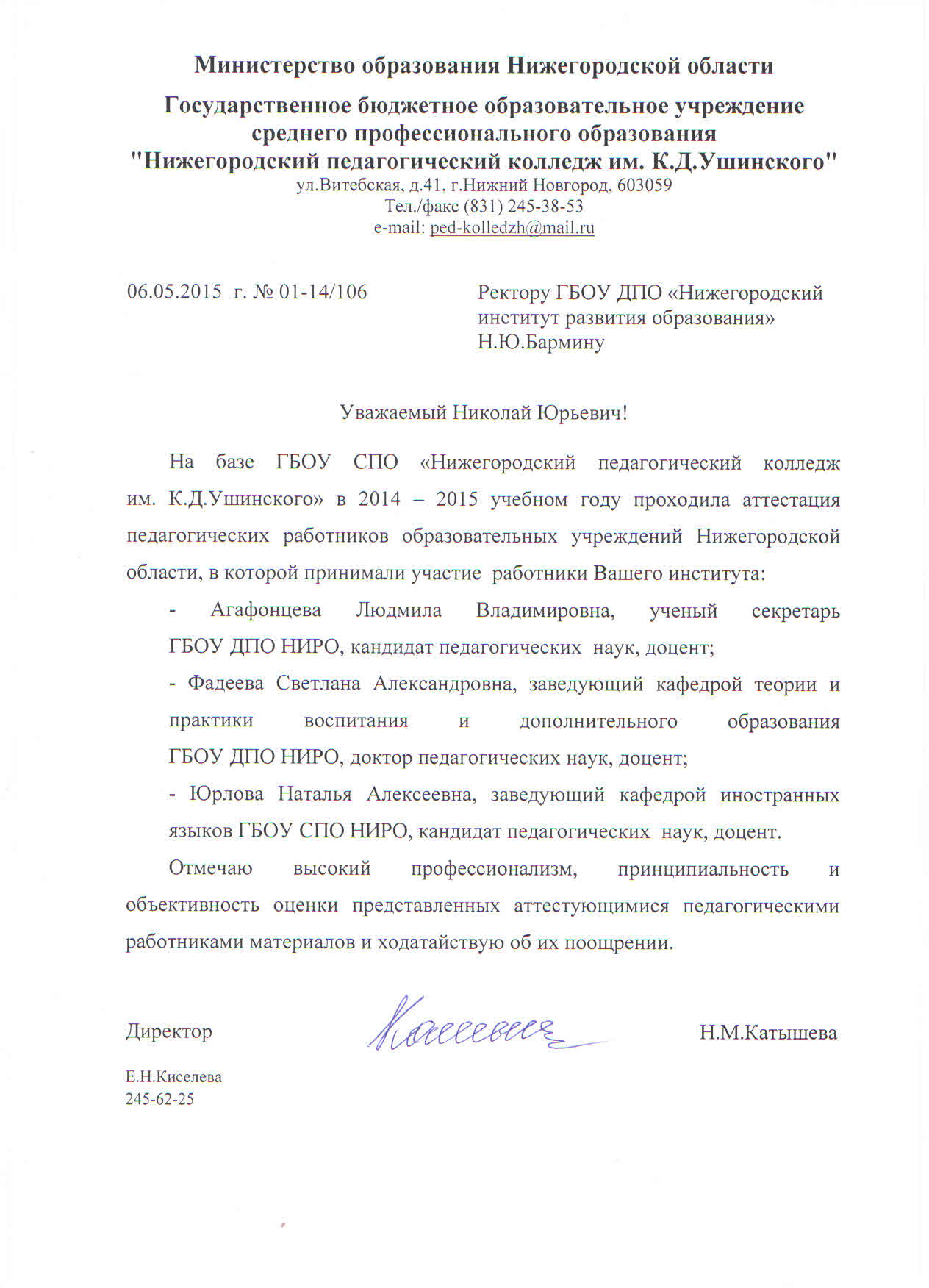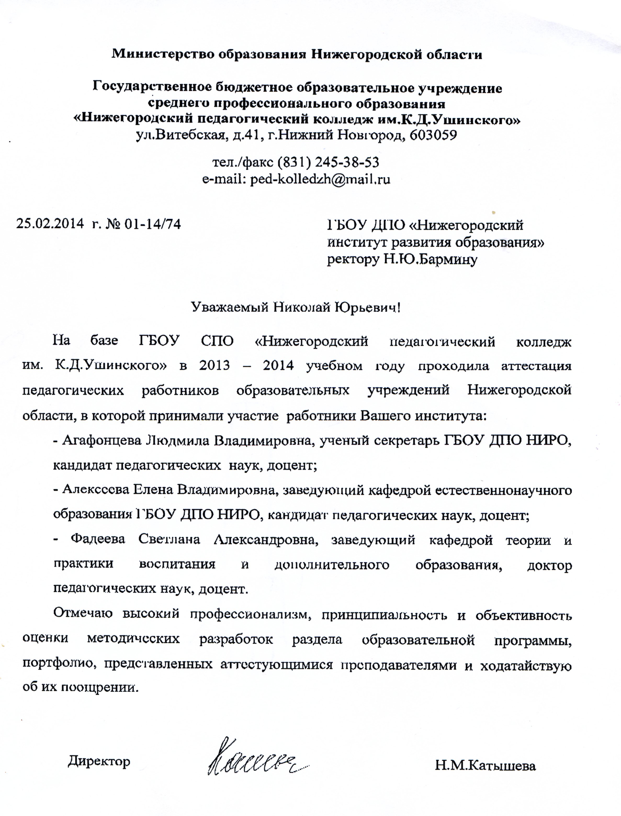 - Благодарность от ГБПОУ "Нижегородского губернского колледжа"
