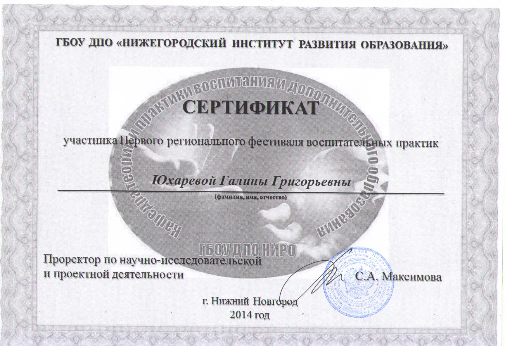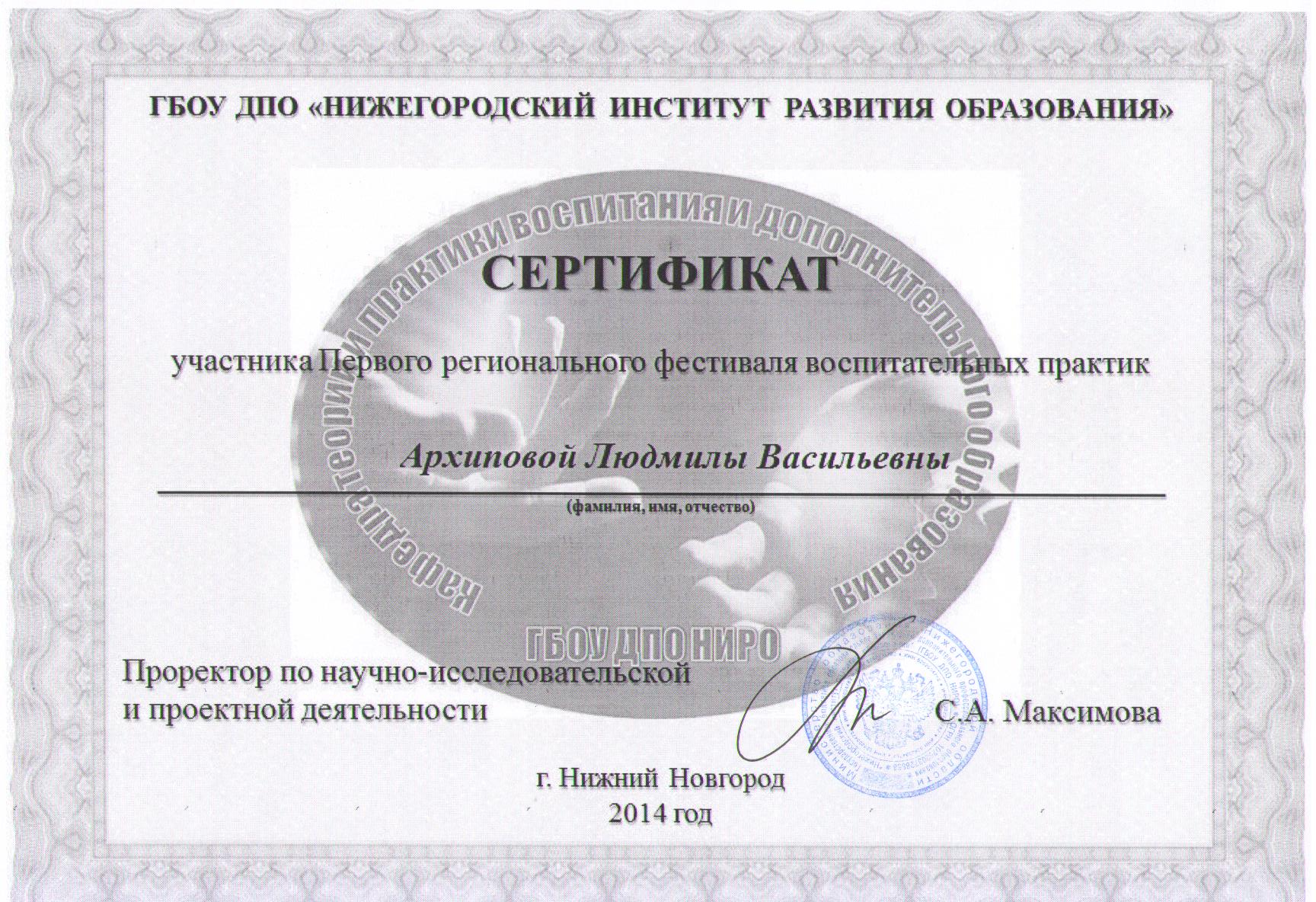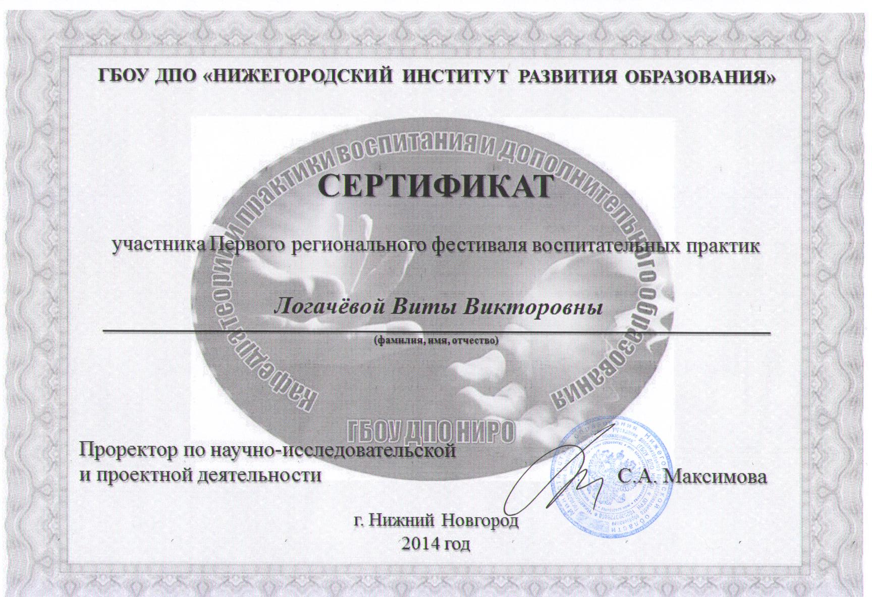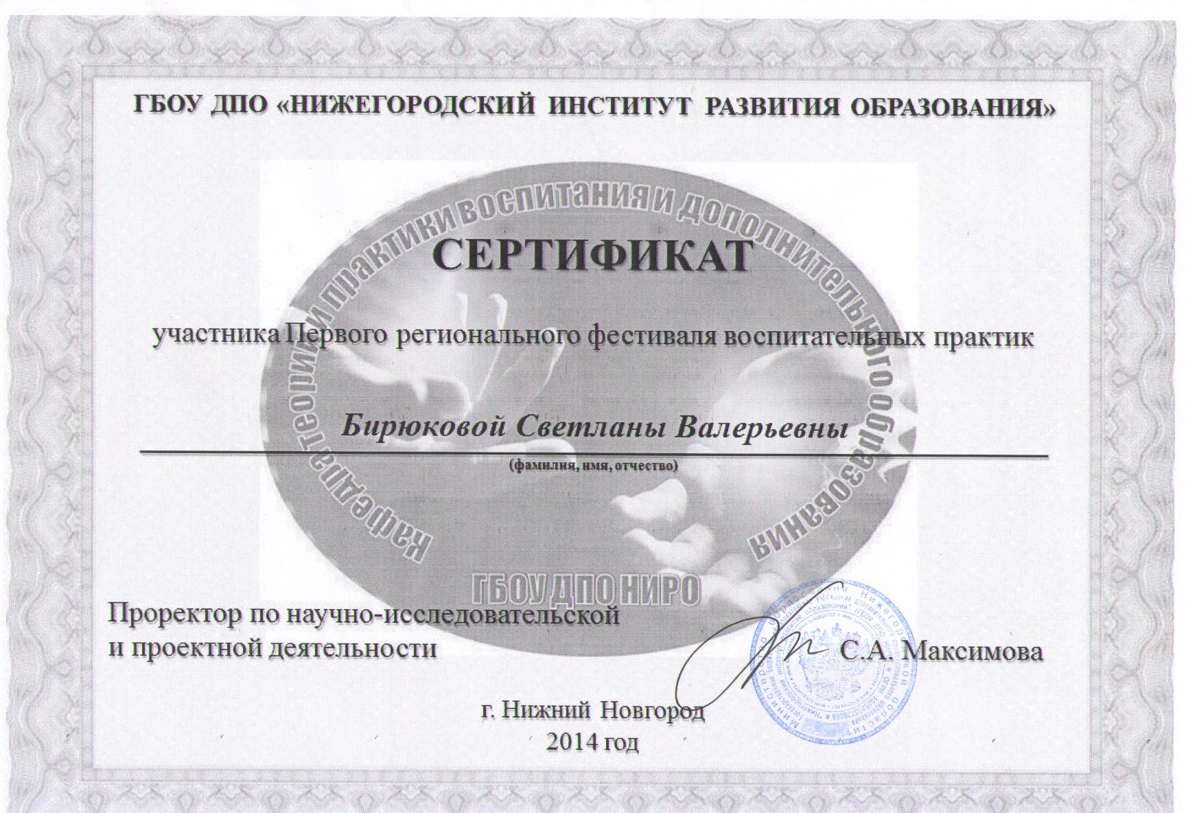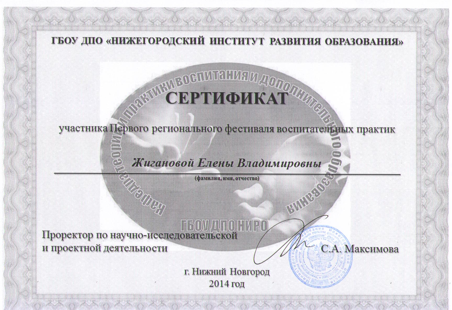 - Благодарность от департамента образования администрации города Нижнего Новгорода