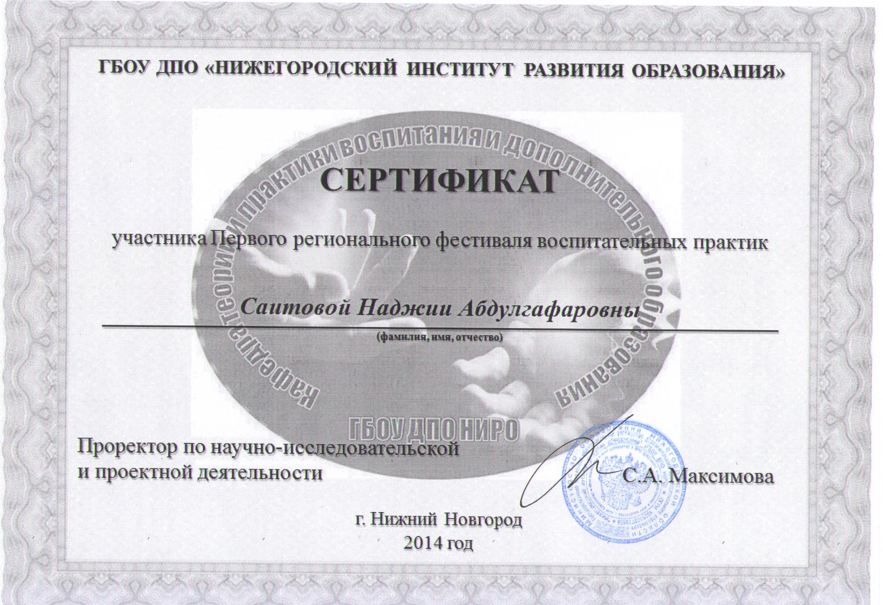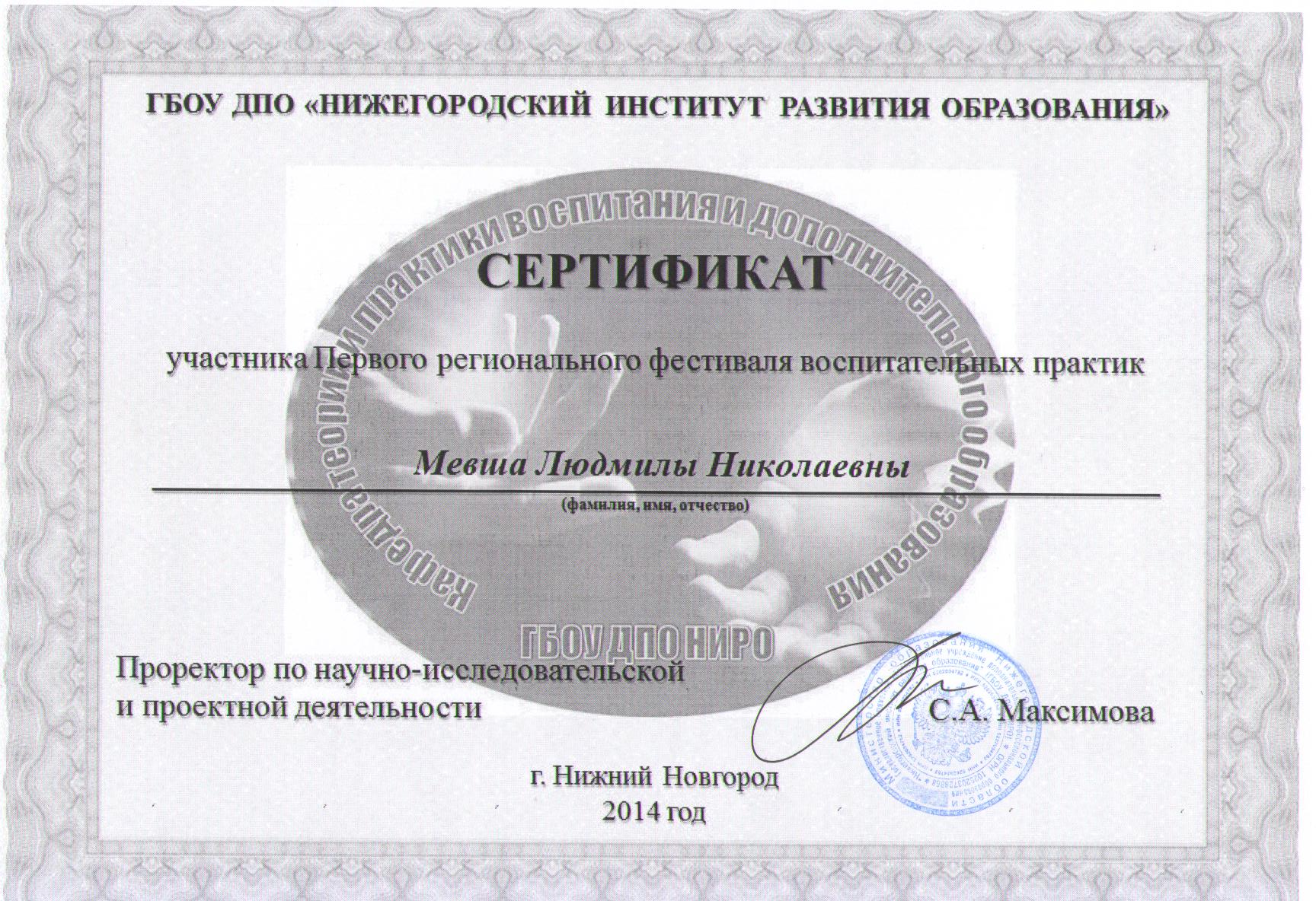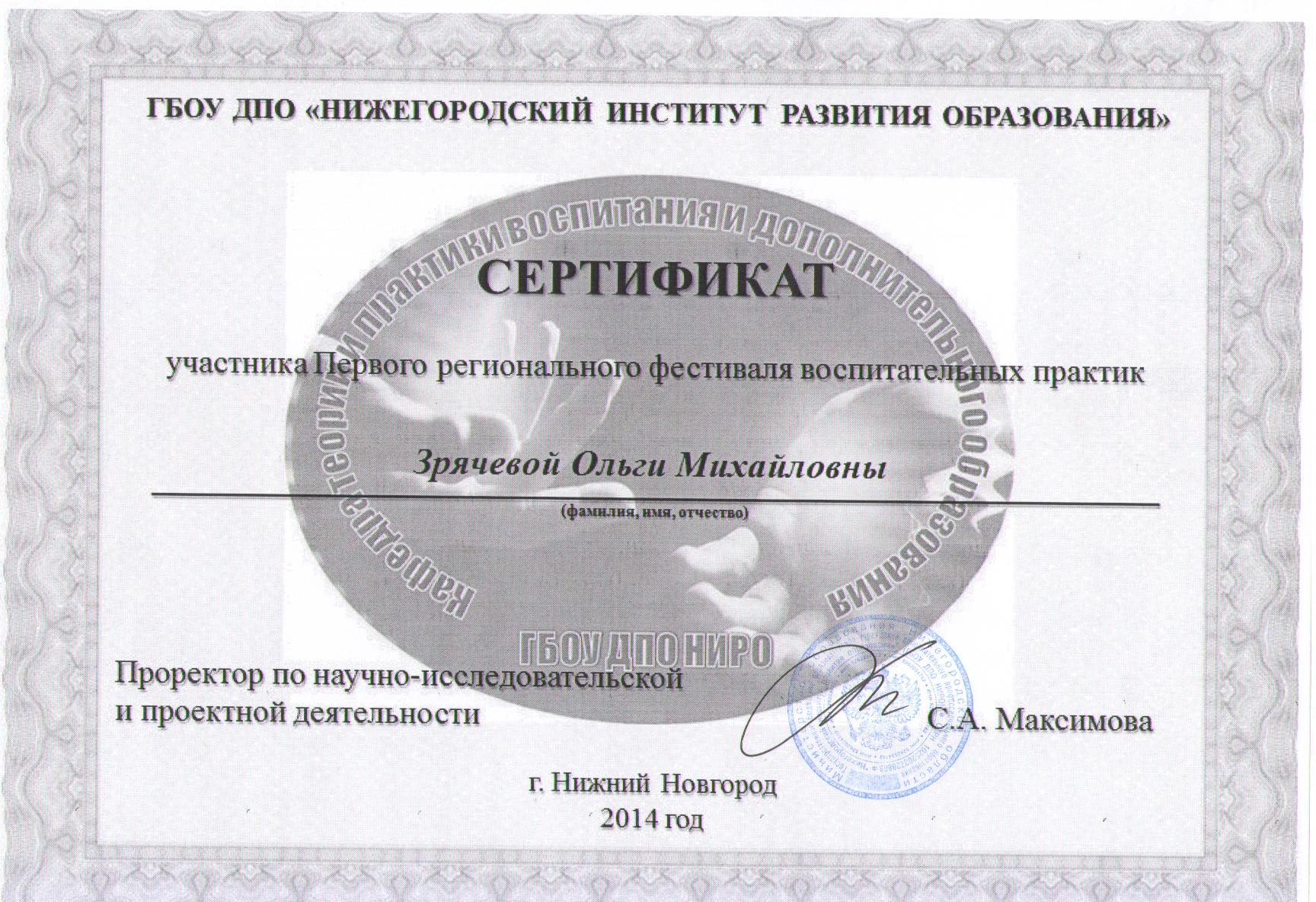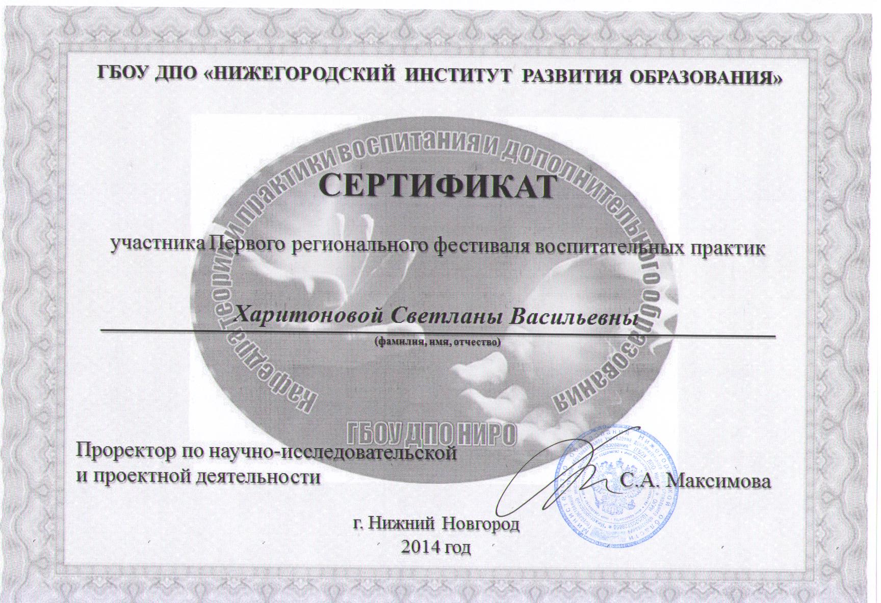 - Благодарность от департамента образования администрации города Нижнего Новгорода