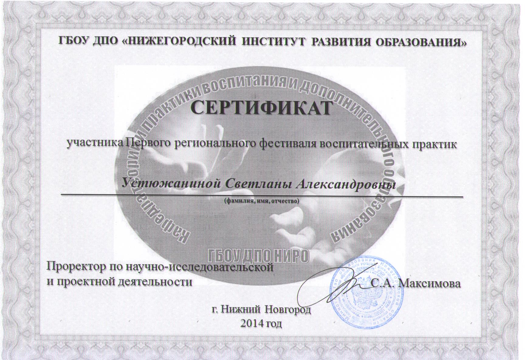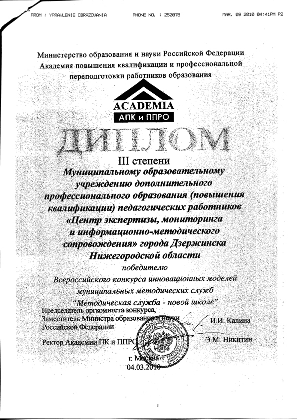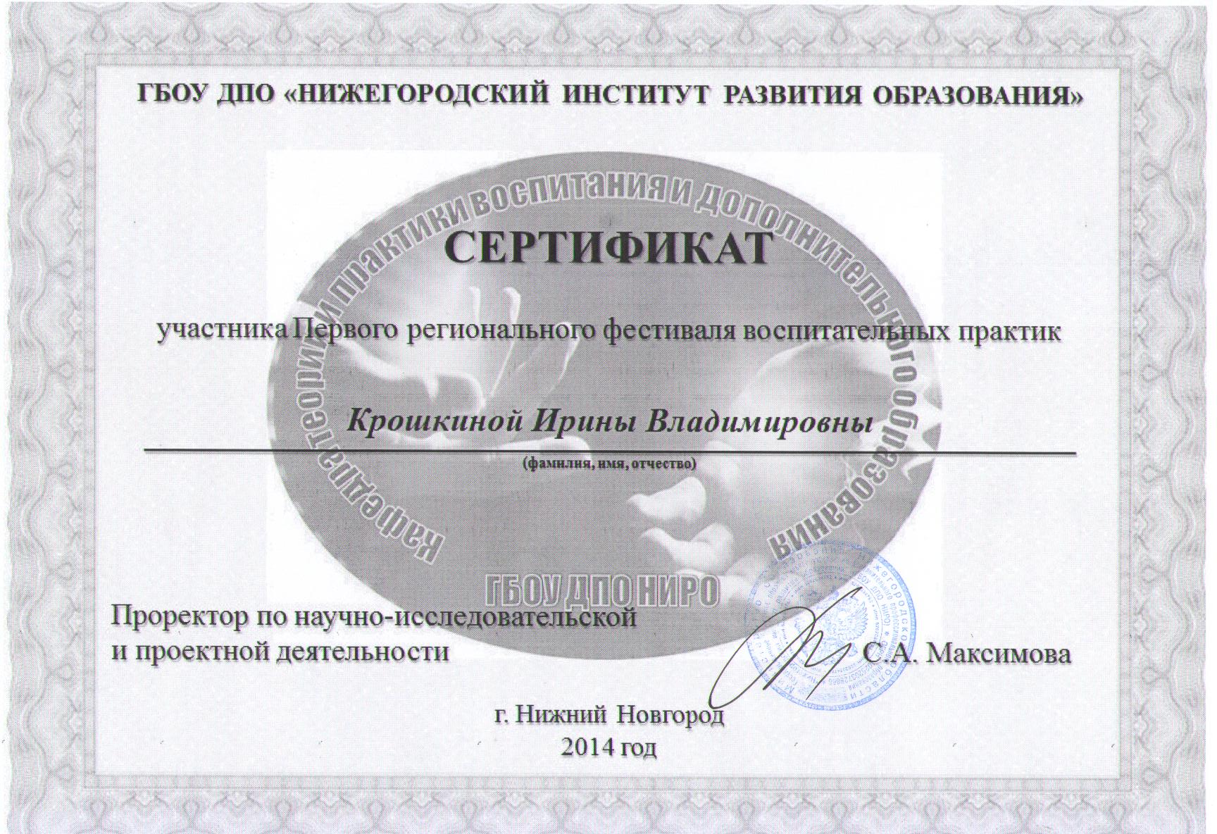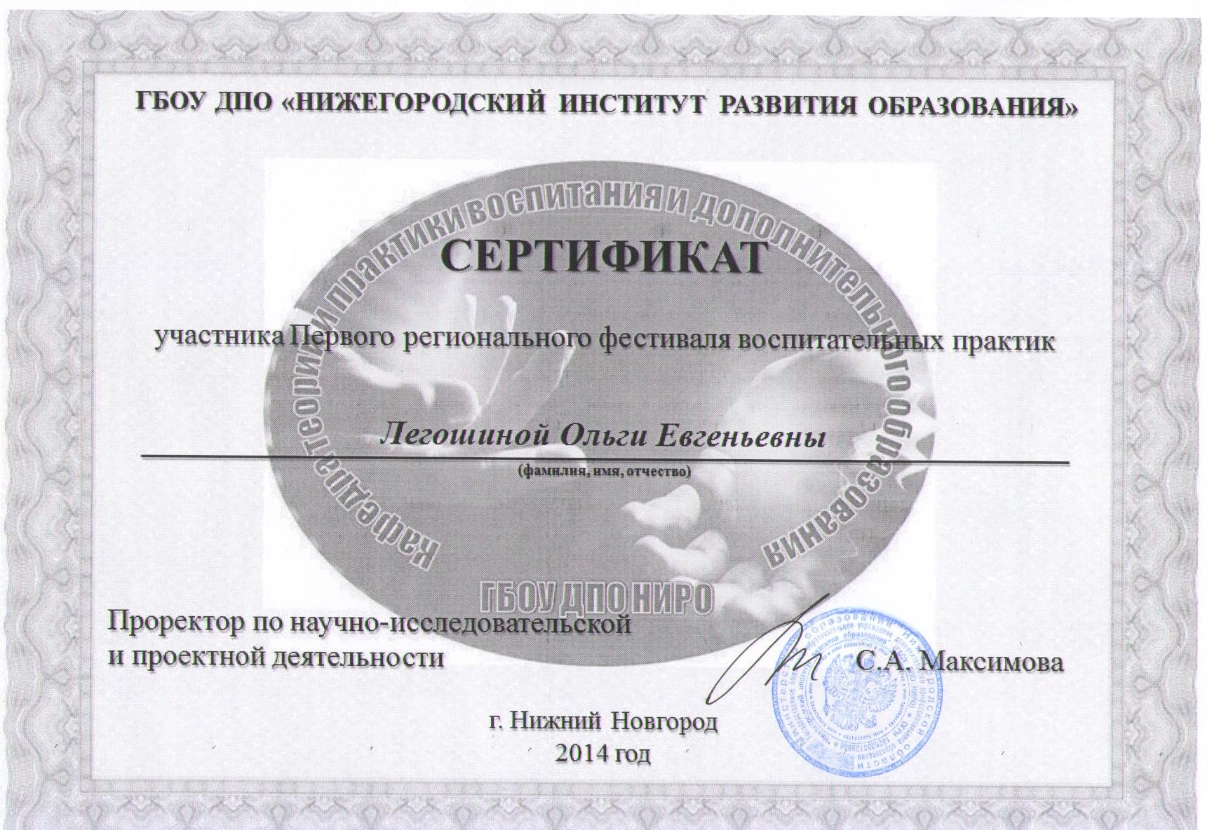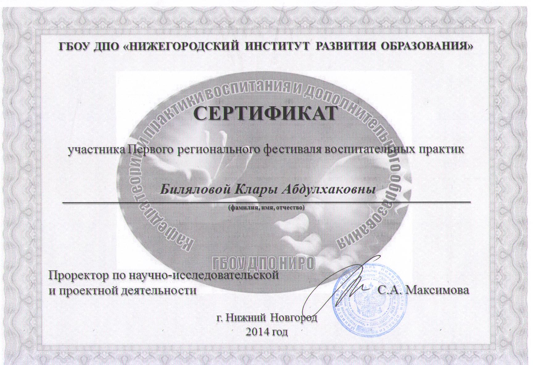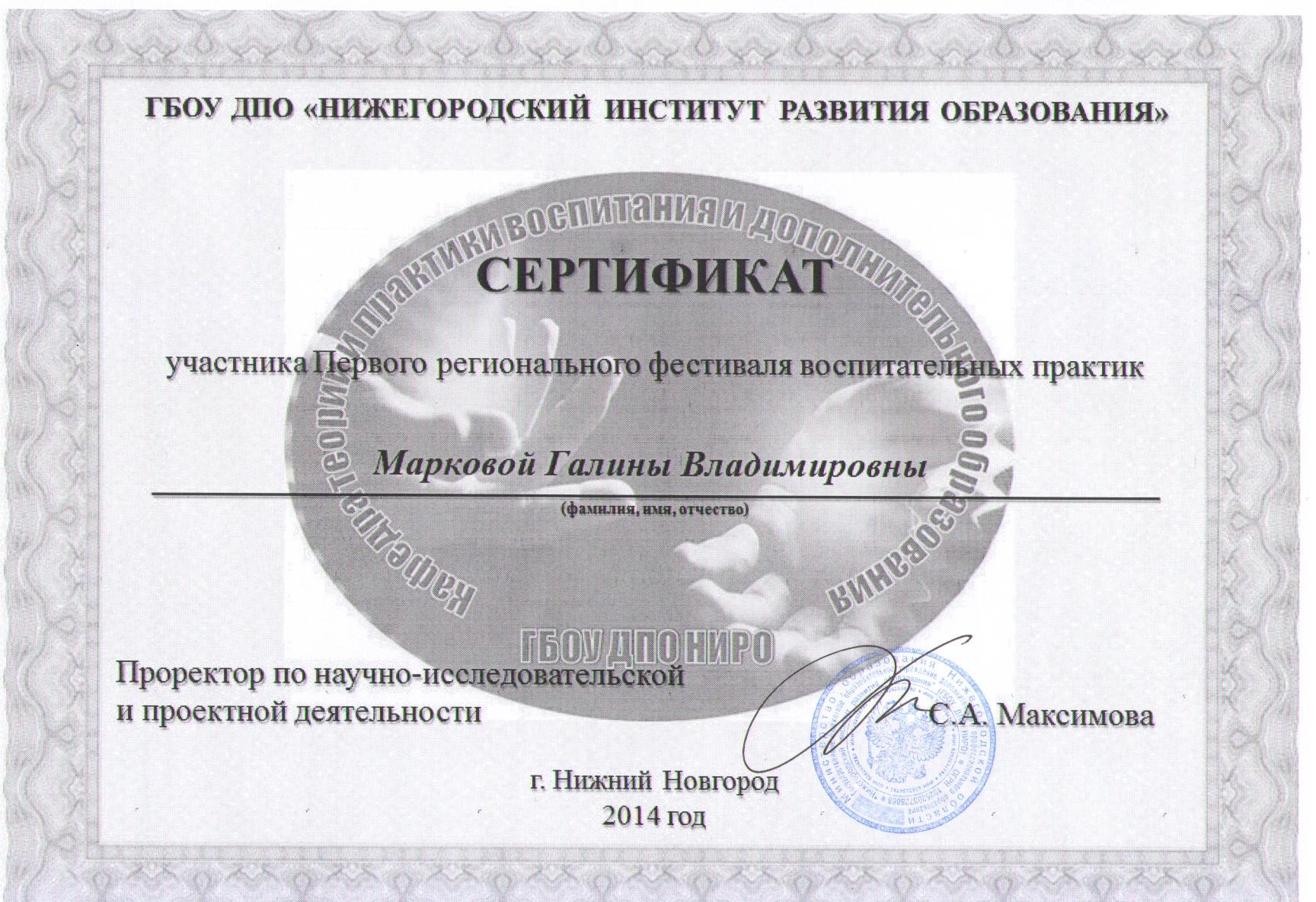 - Благодарность от департамента образования администрации города Нижнего Новгорода