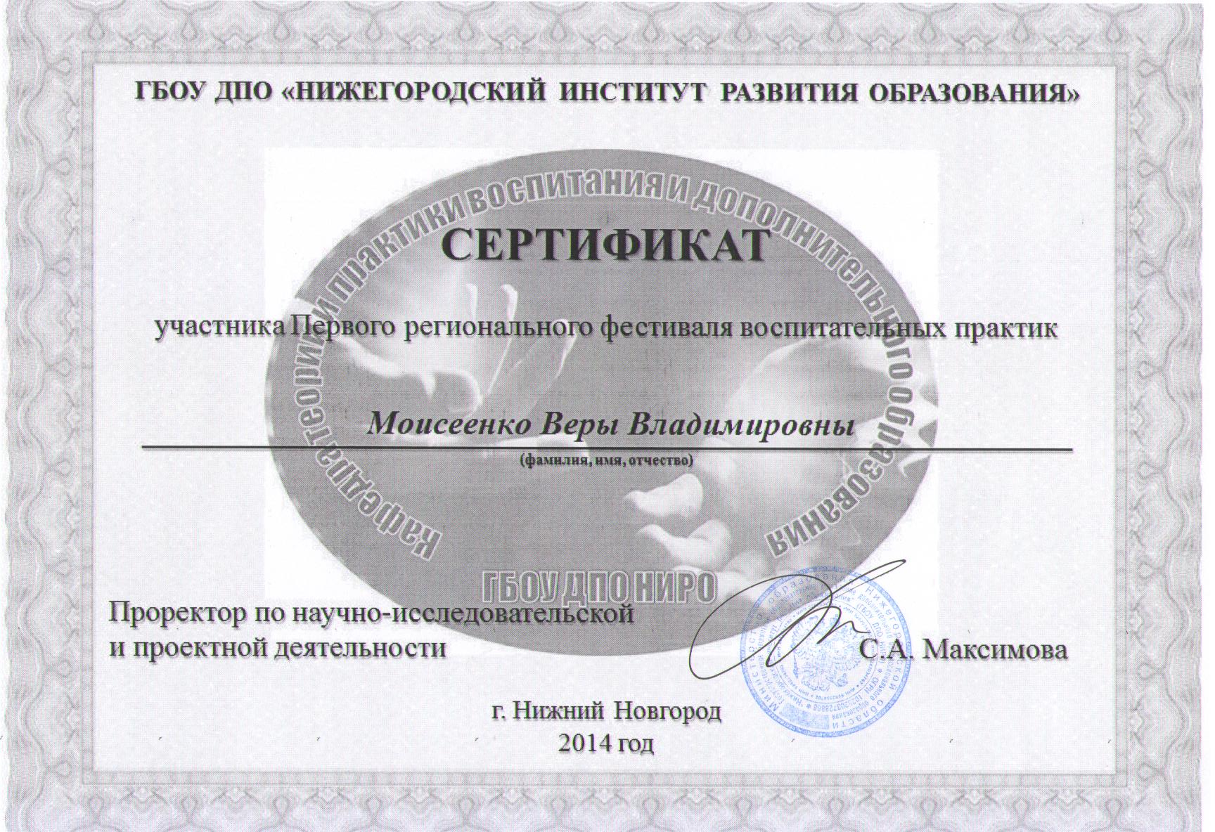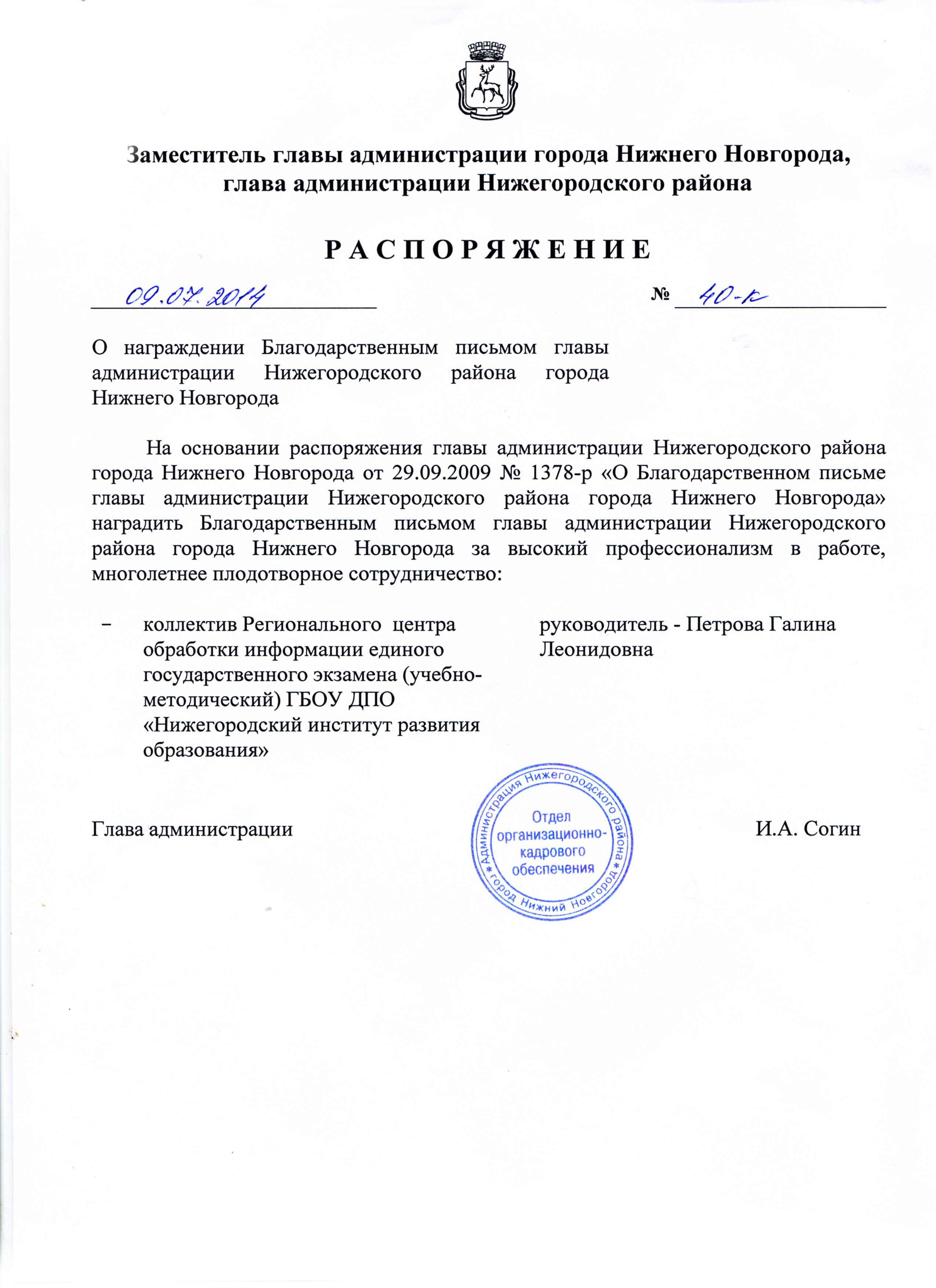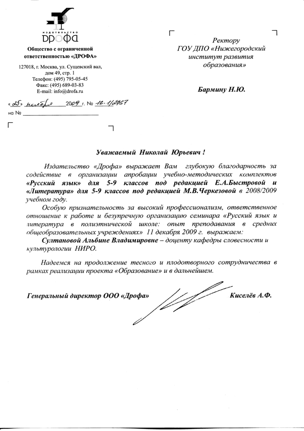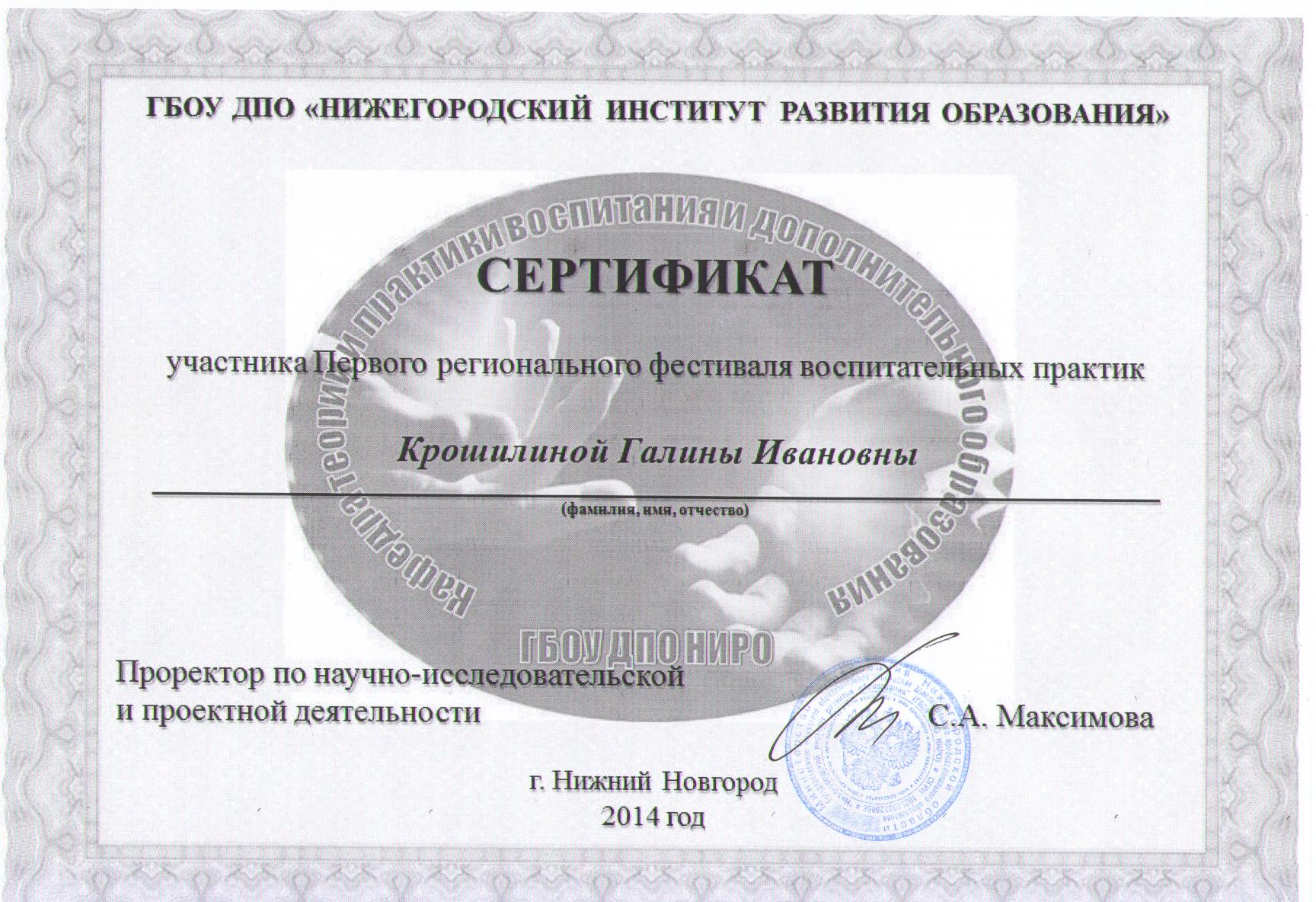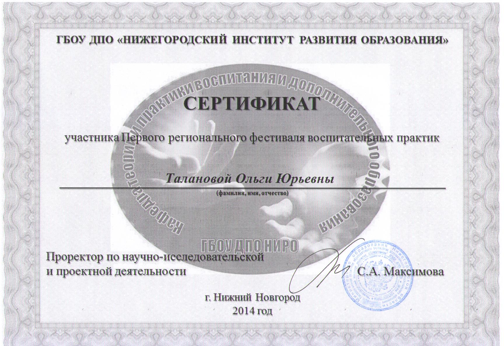 - Благодарность от департамента образования администрации города Нижнего Новгорода