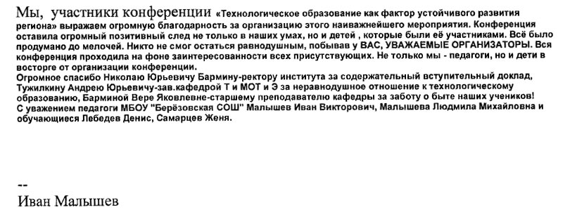 - Благодарность от администрации МБОУ Лицея № 67 г. Иваново