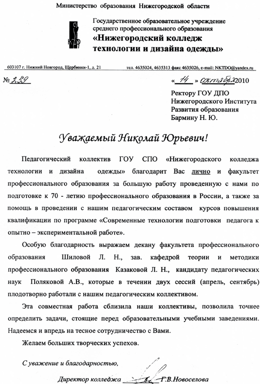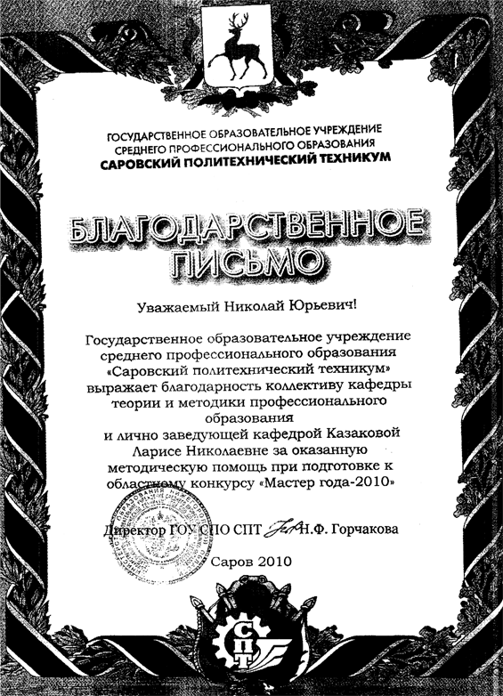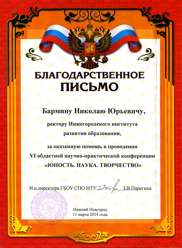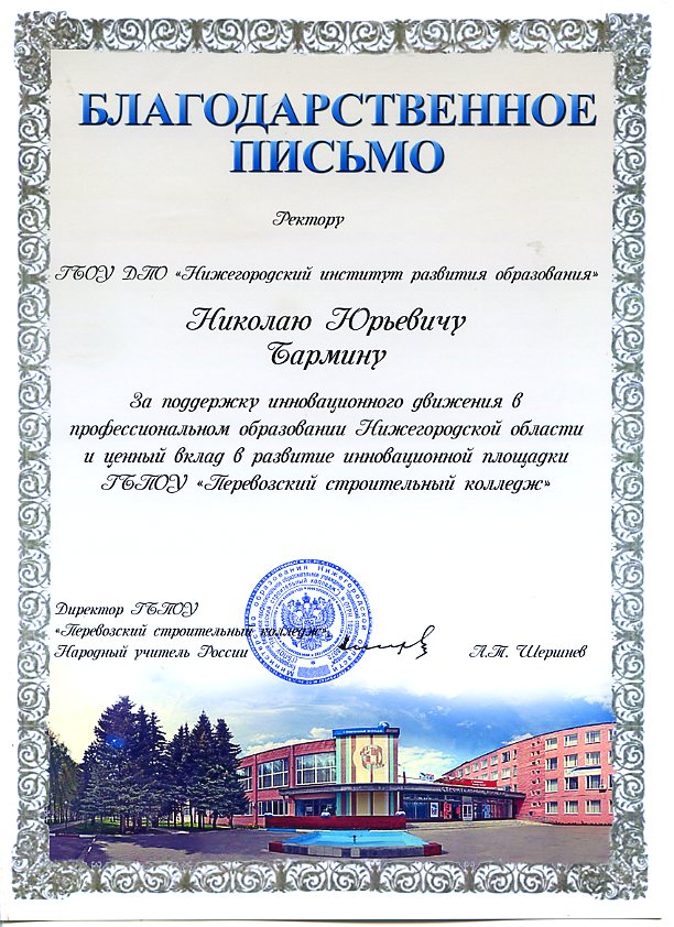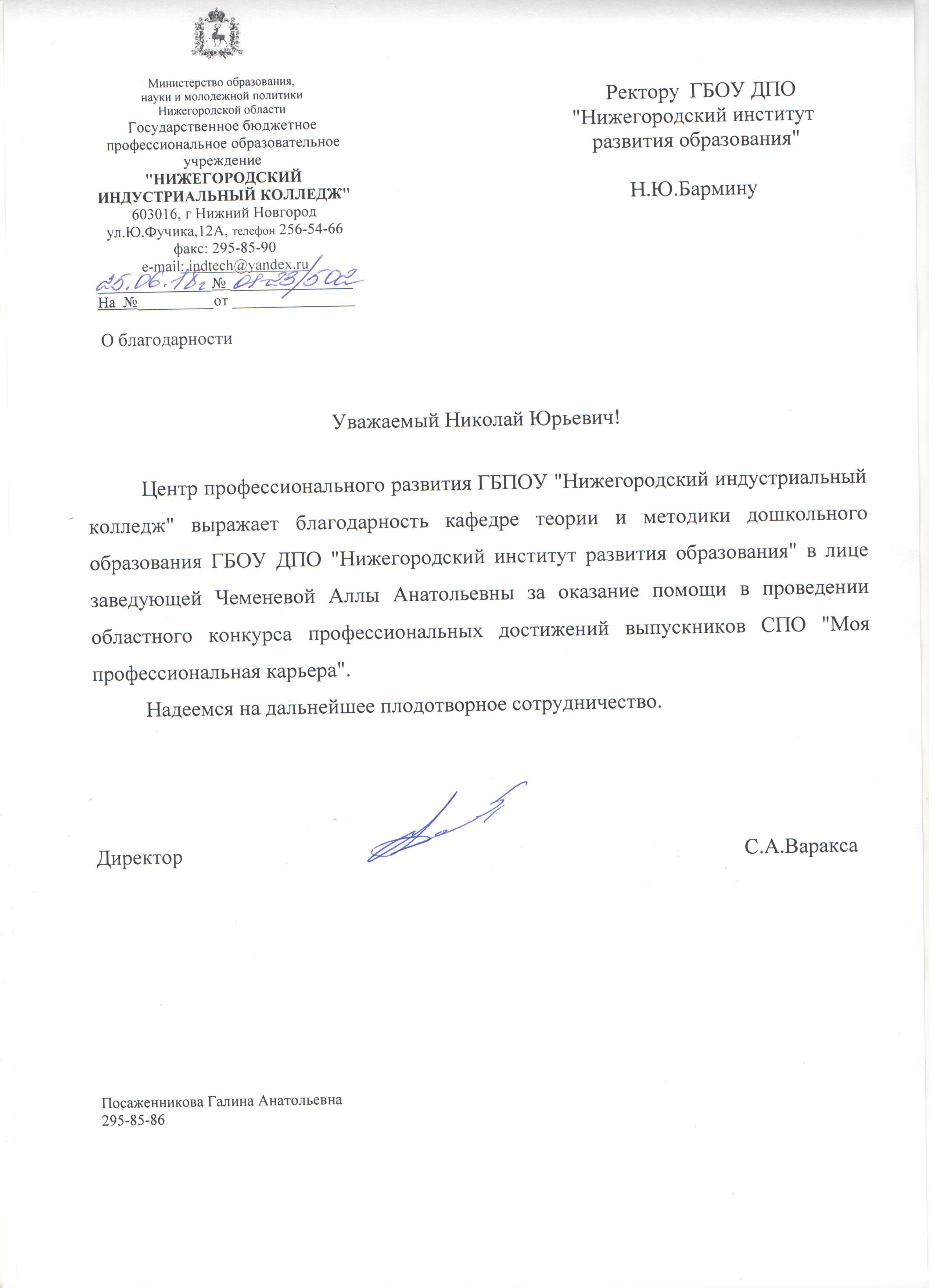 - Благодарность от ГБПОУ "Нижегородский индустриальный колледж"