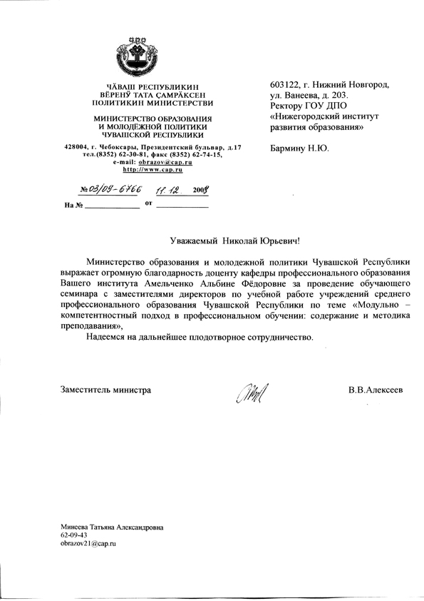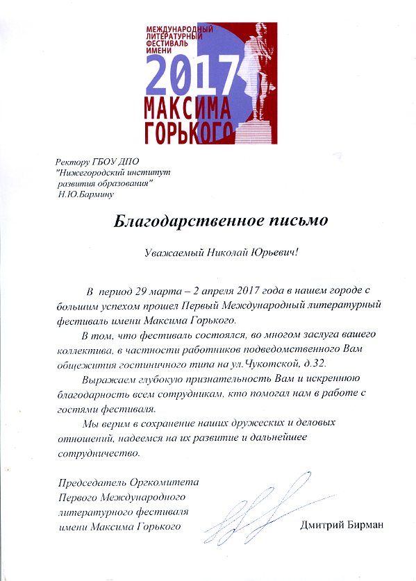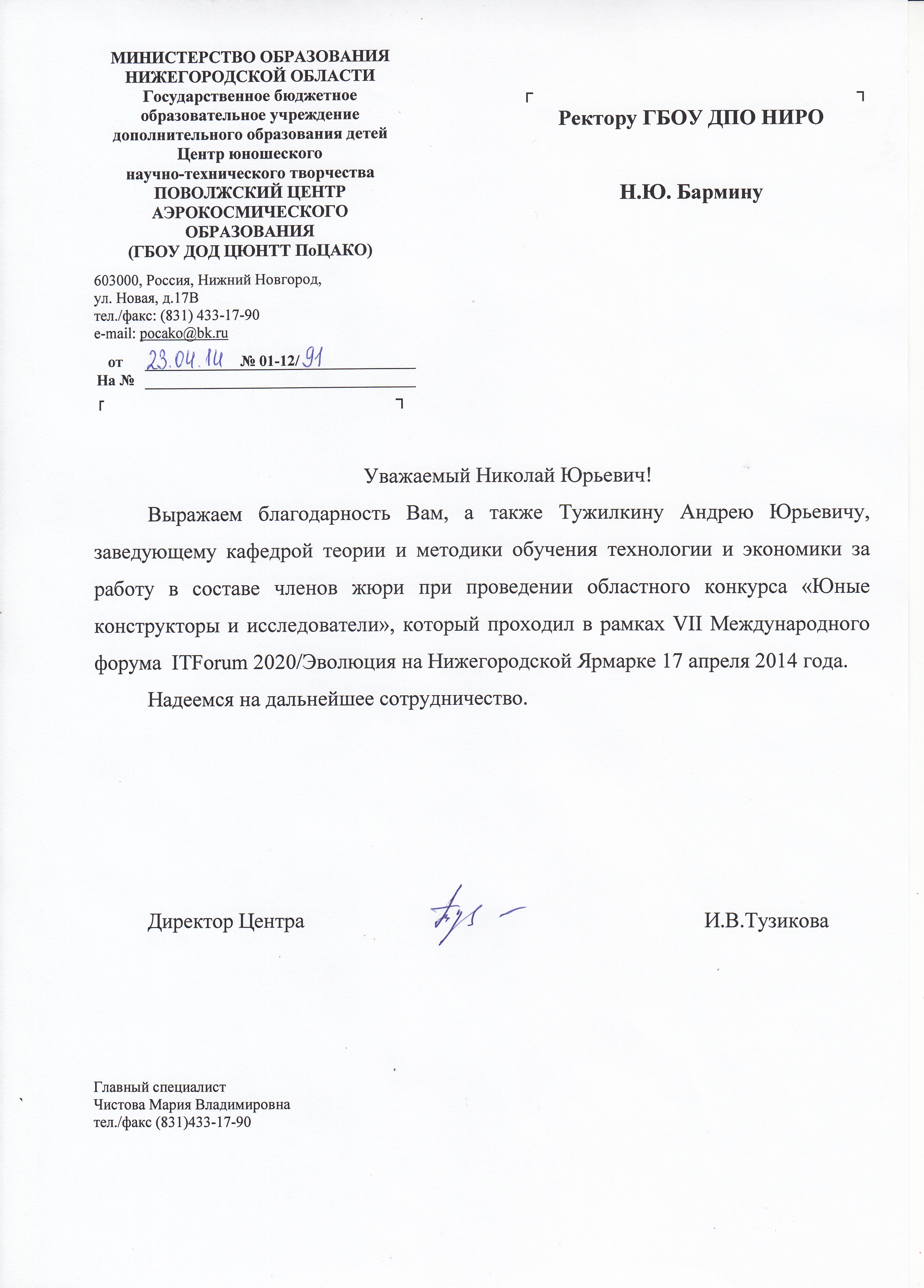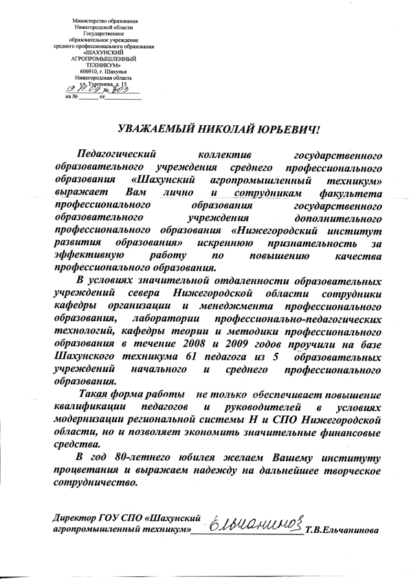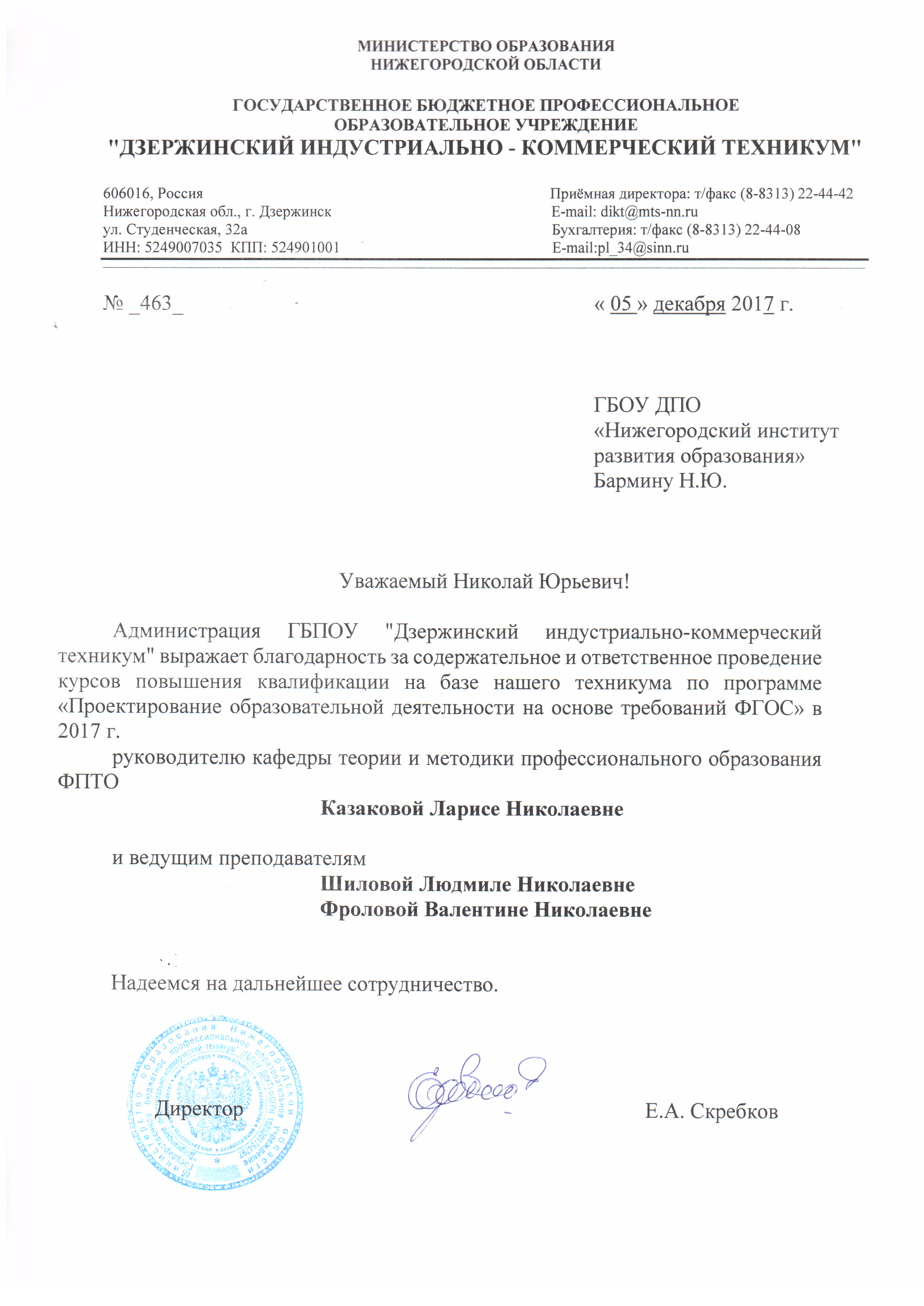 - Благодарность от ГБПОУ "Нижегородский индустриальный колледж"