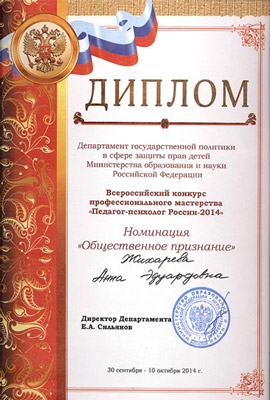 - Благодарность от Санкт-Петербугской академии постдипломного педагогического образования