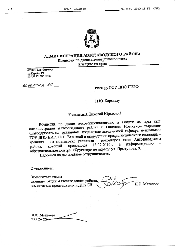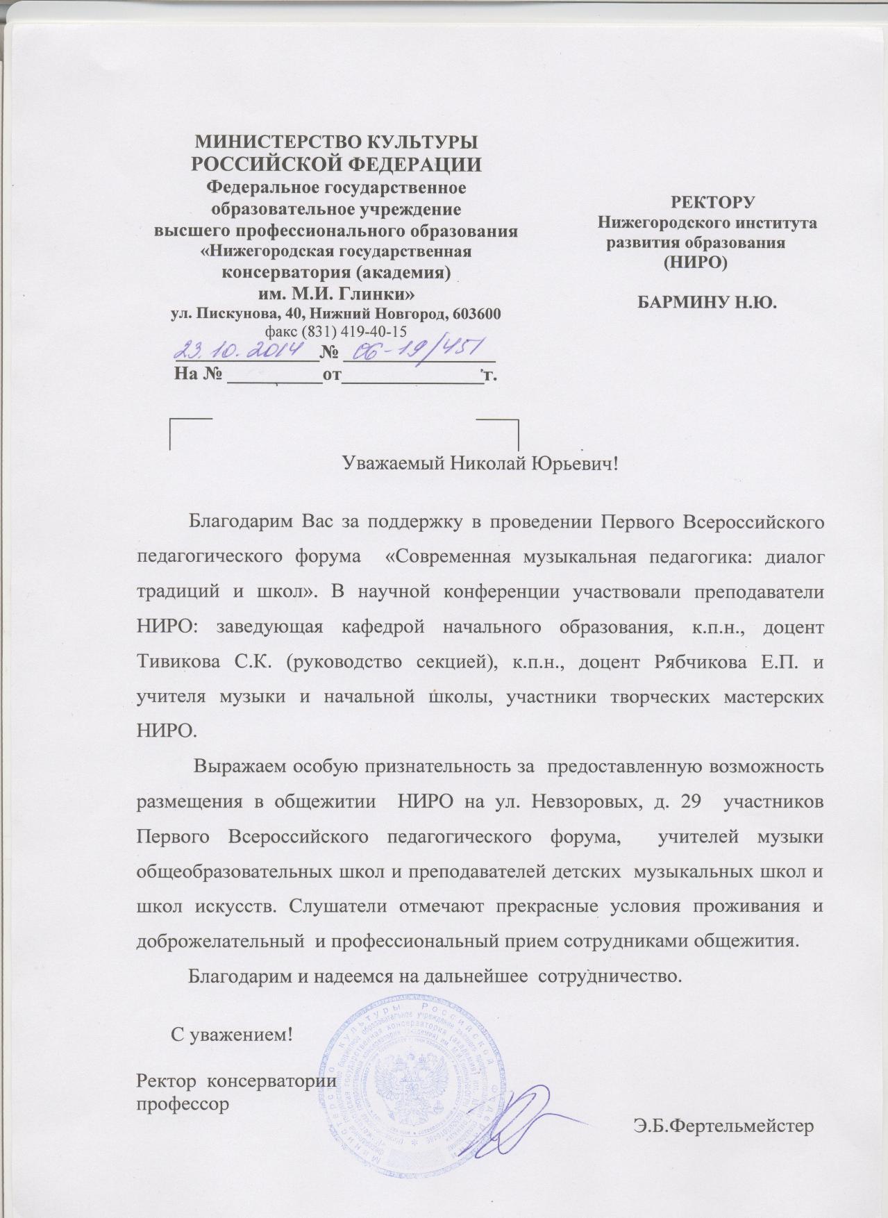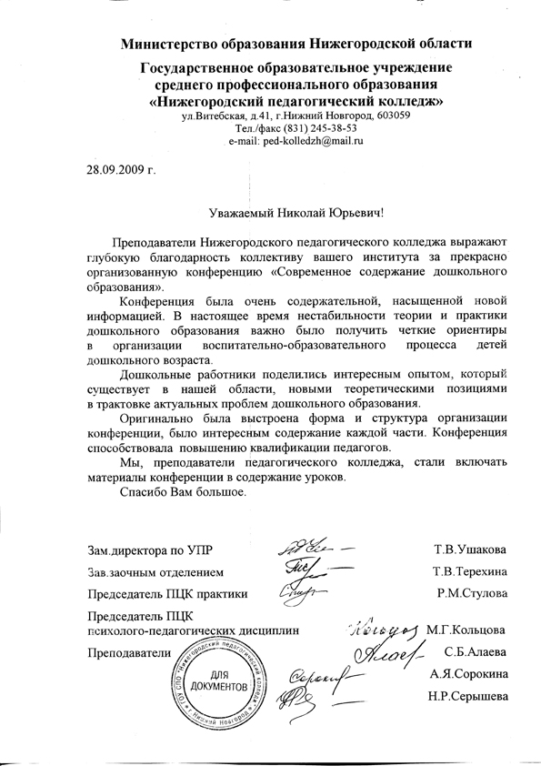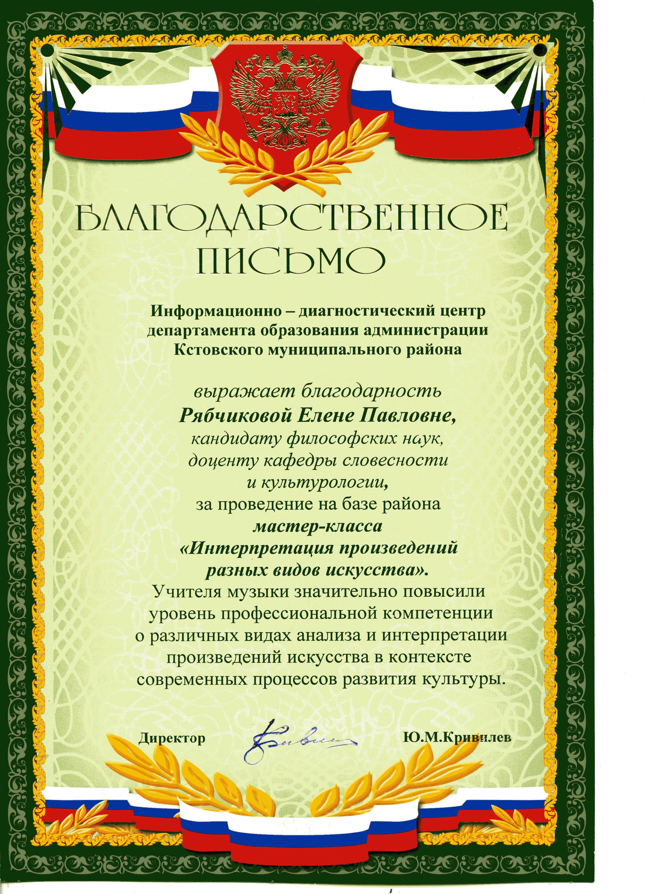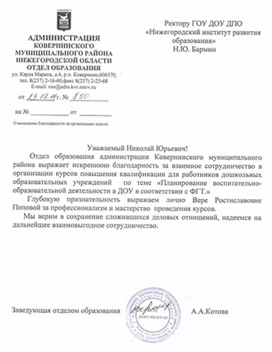 - Благодарность от музыкальных руководителей Московского района и Сормовского района г. Нижнего Новгорода