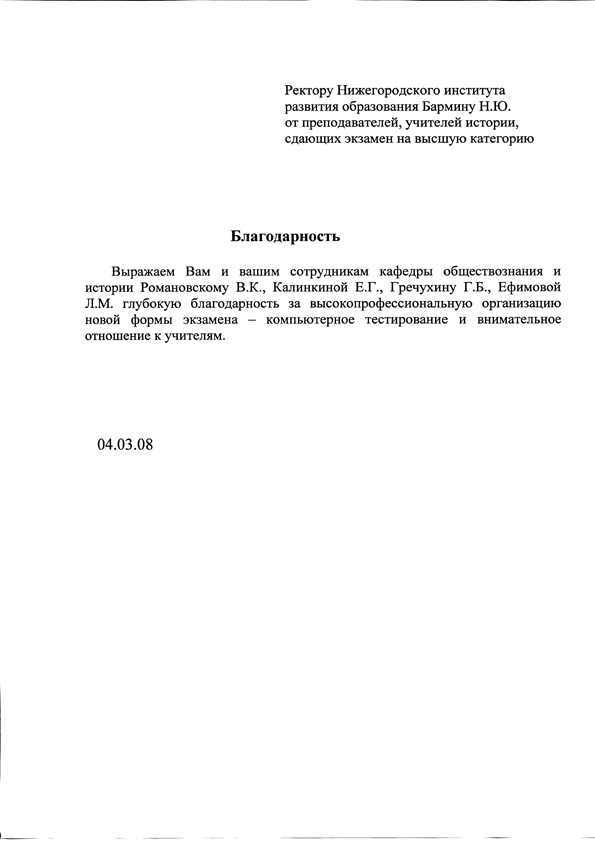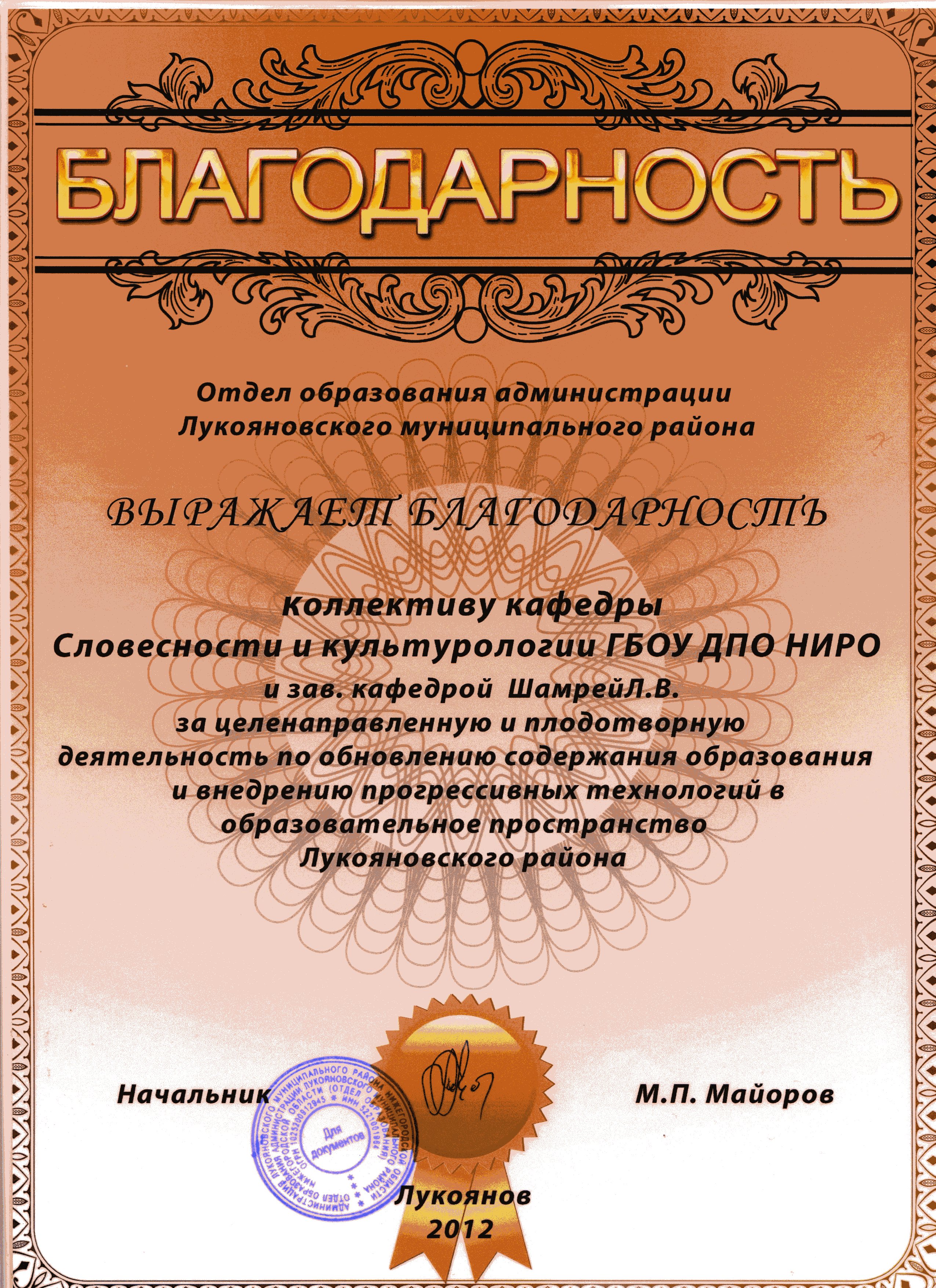 - Благодарность от директора Лукояновского педагогического колледжа им.А.М.Горького