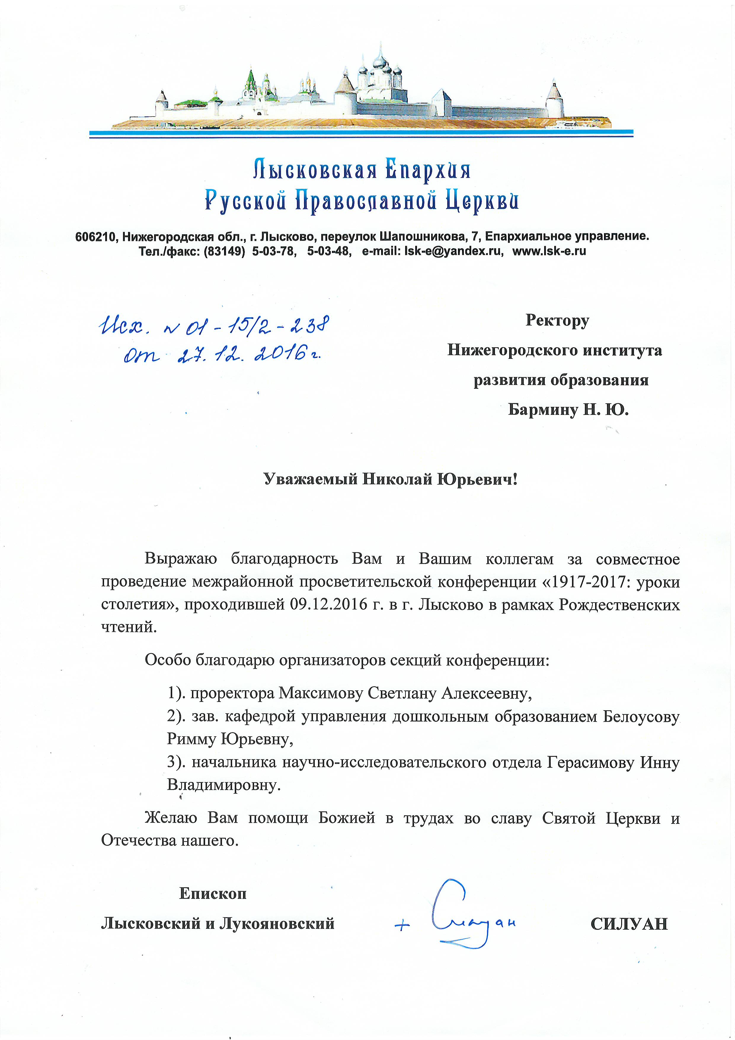 - Благодарность от Отдела образования и катехизации Нижегородской епархии