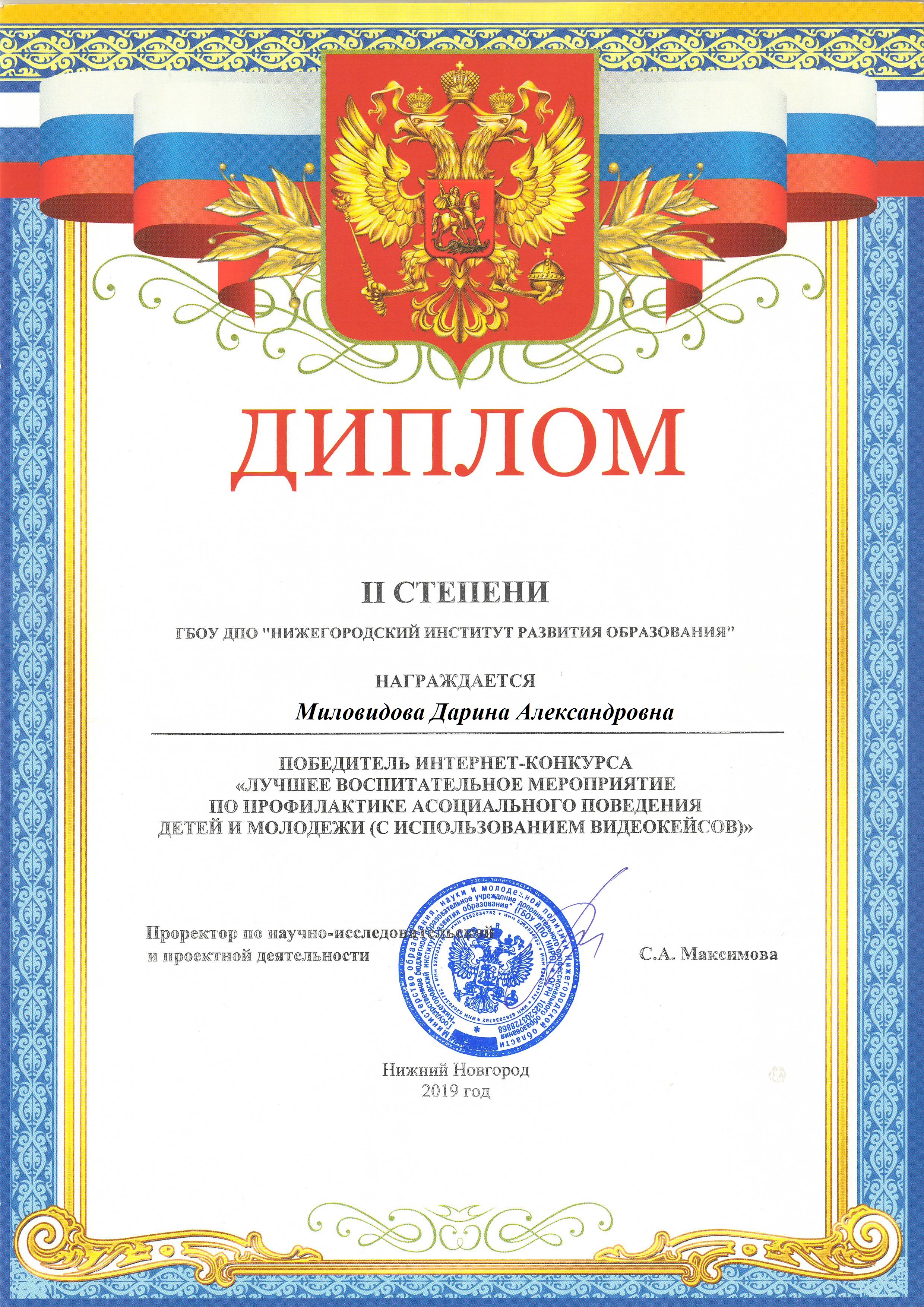 - Благодарность от министерства образования, науки и молодежной политики Нижегородской области