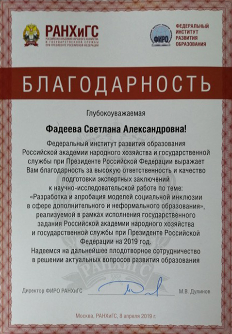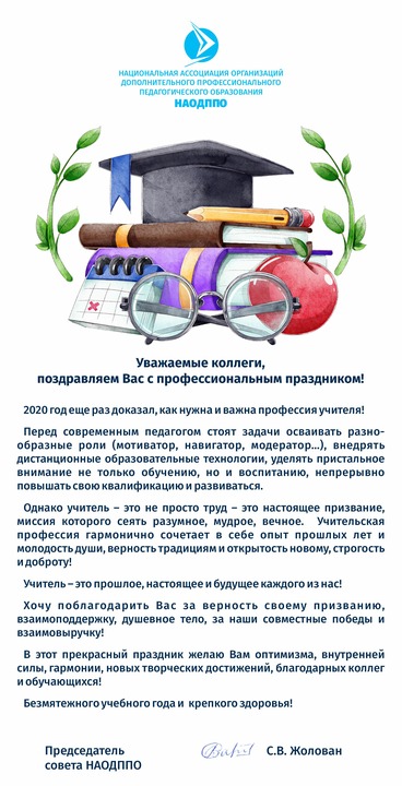- Благодарность от Национальной ассоциации организаций дополнительного профессионального педагогического образования