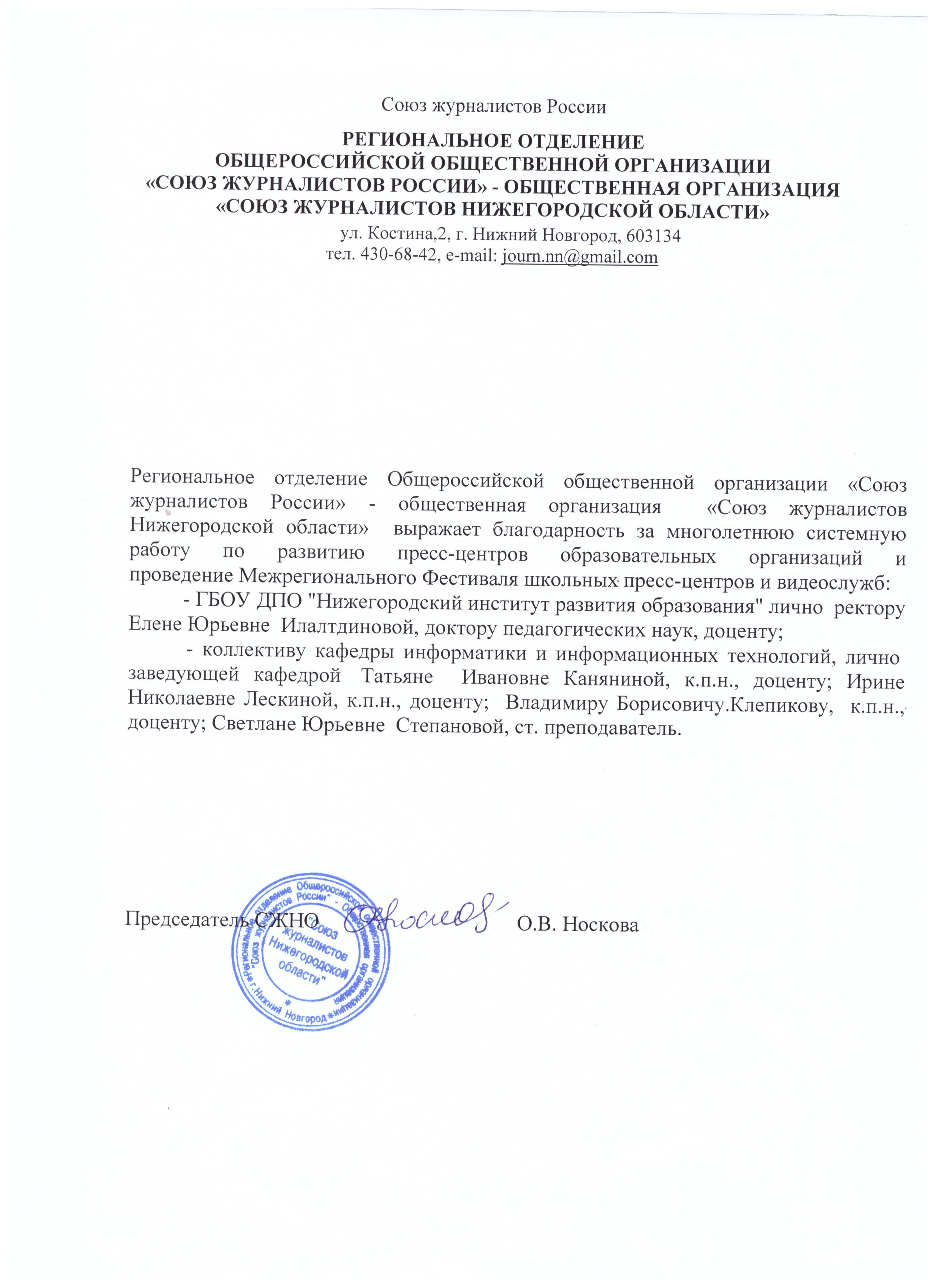- Благодарность от Нижегородской областной организации Профсоюза работников образования и науки РФ